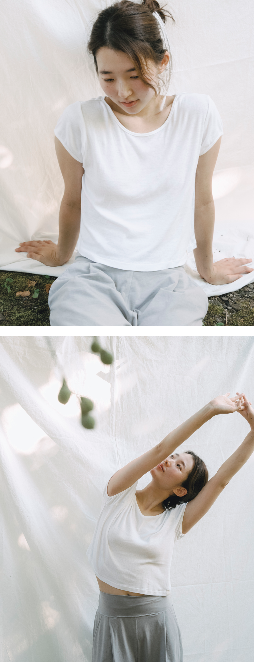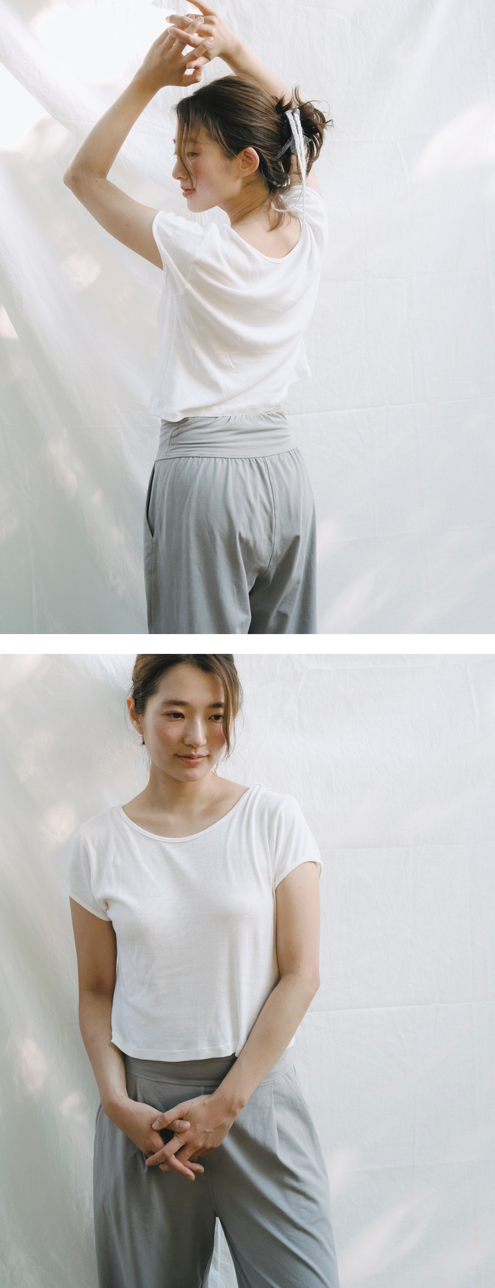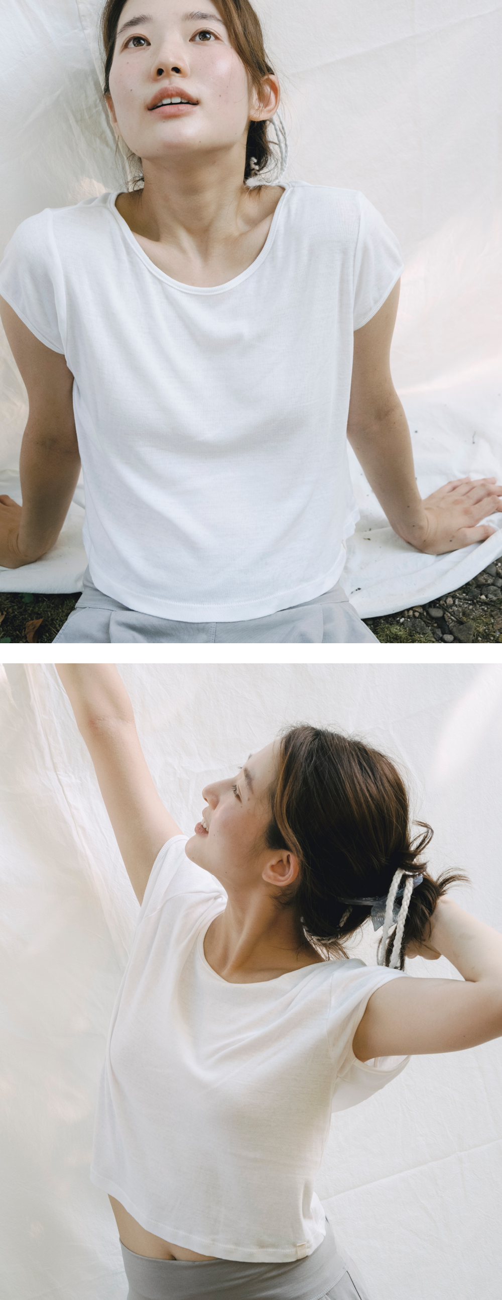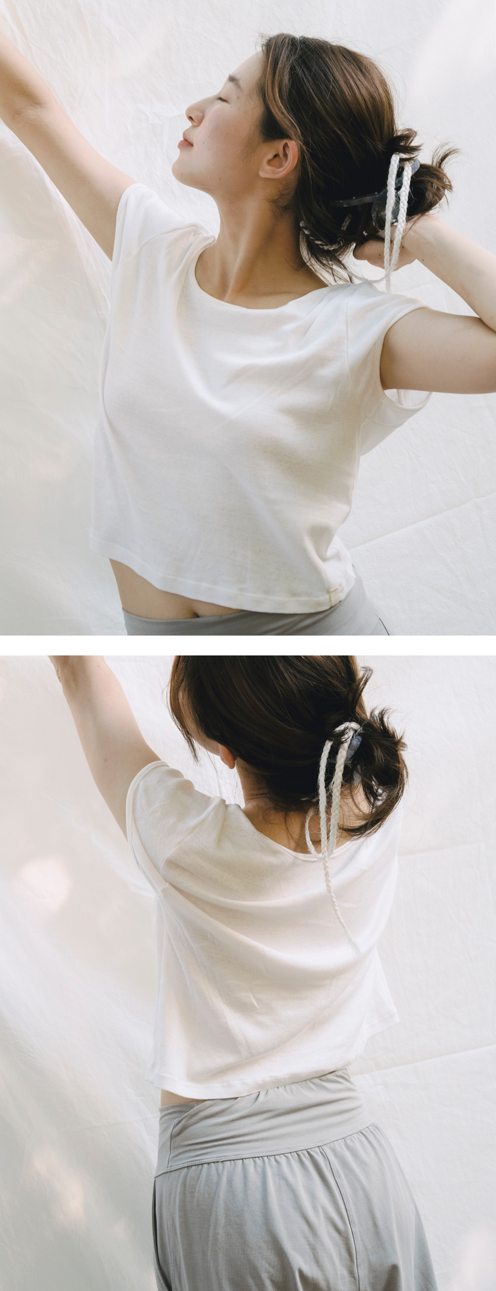부드럽게 흐르는 100% 오가닉 코튼 원단으로 만든 반팔 티셔츠. 잘 늘어나는 원단으로 다양한 활동에 적합합니다. 수푸이 브라렛과 함께 착용하면 좋은 요가웨어가 됩니다.