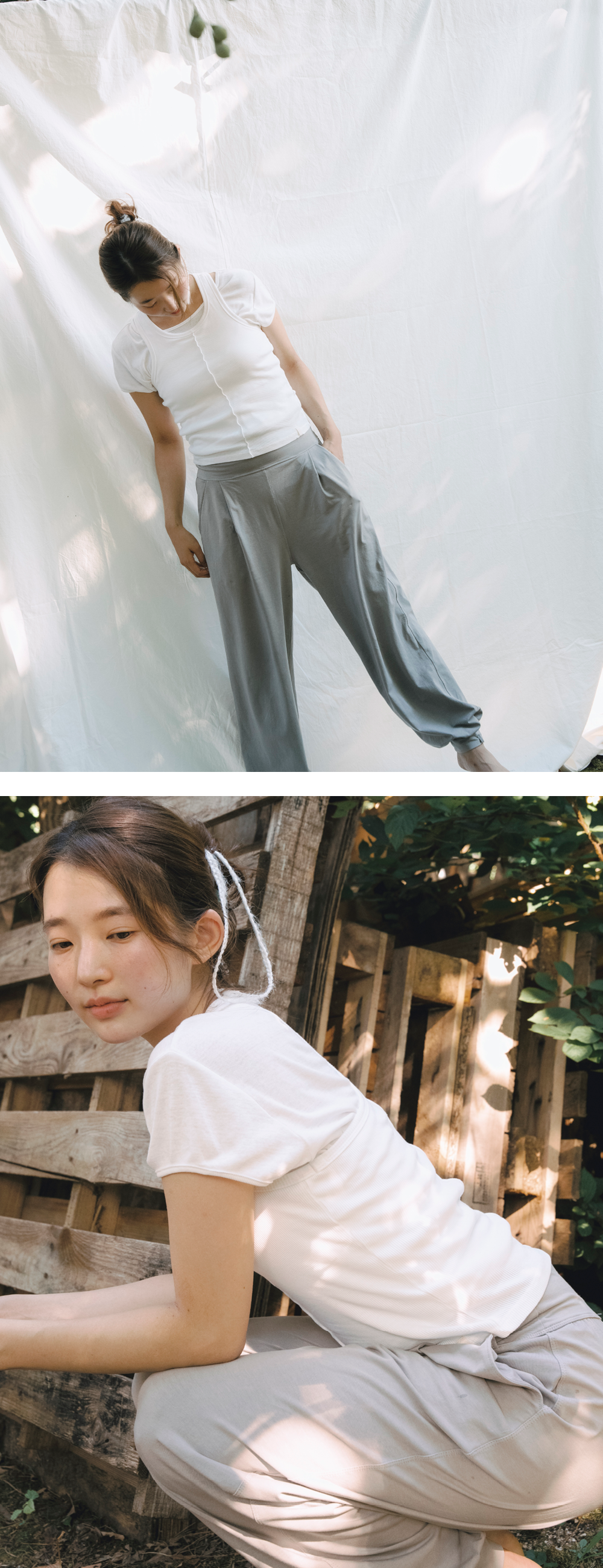 부드러운 오가닉 코튼 스판 원단으로 만든 롱팬츠.