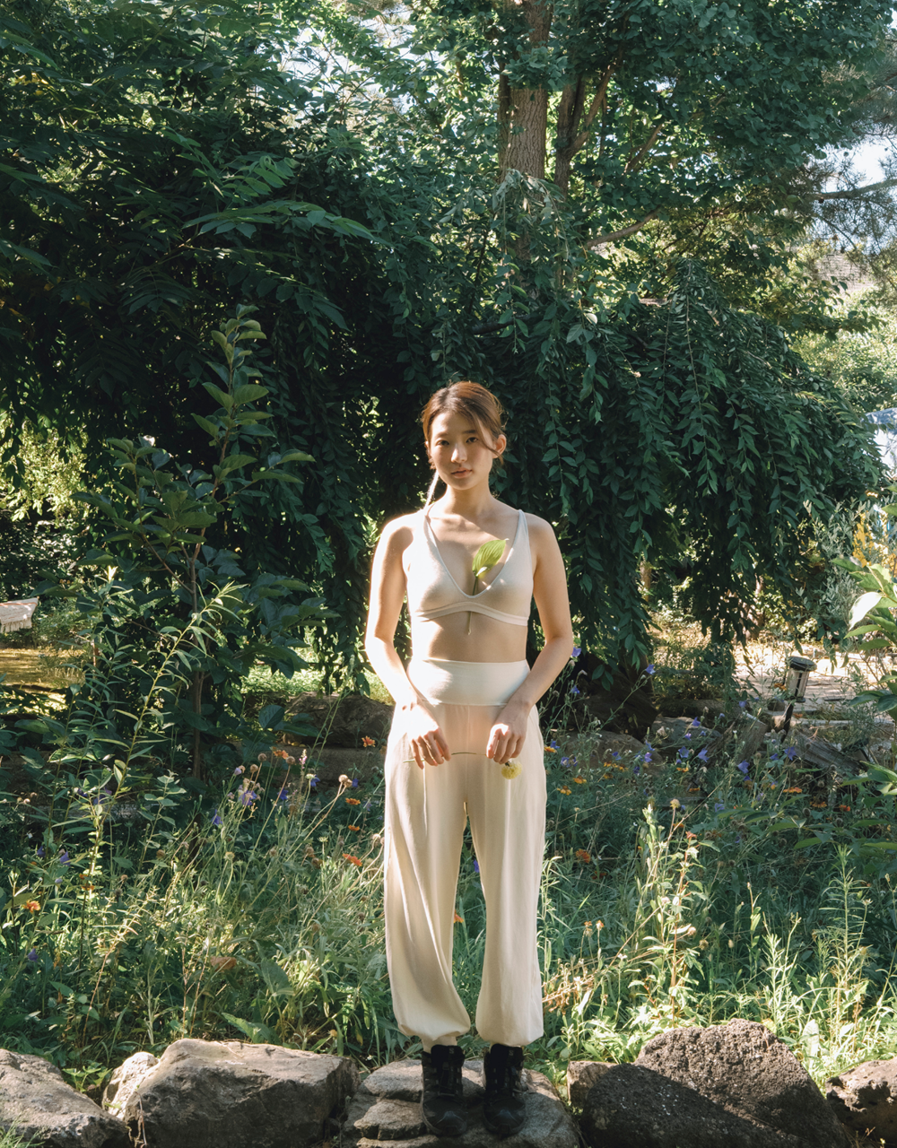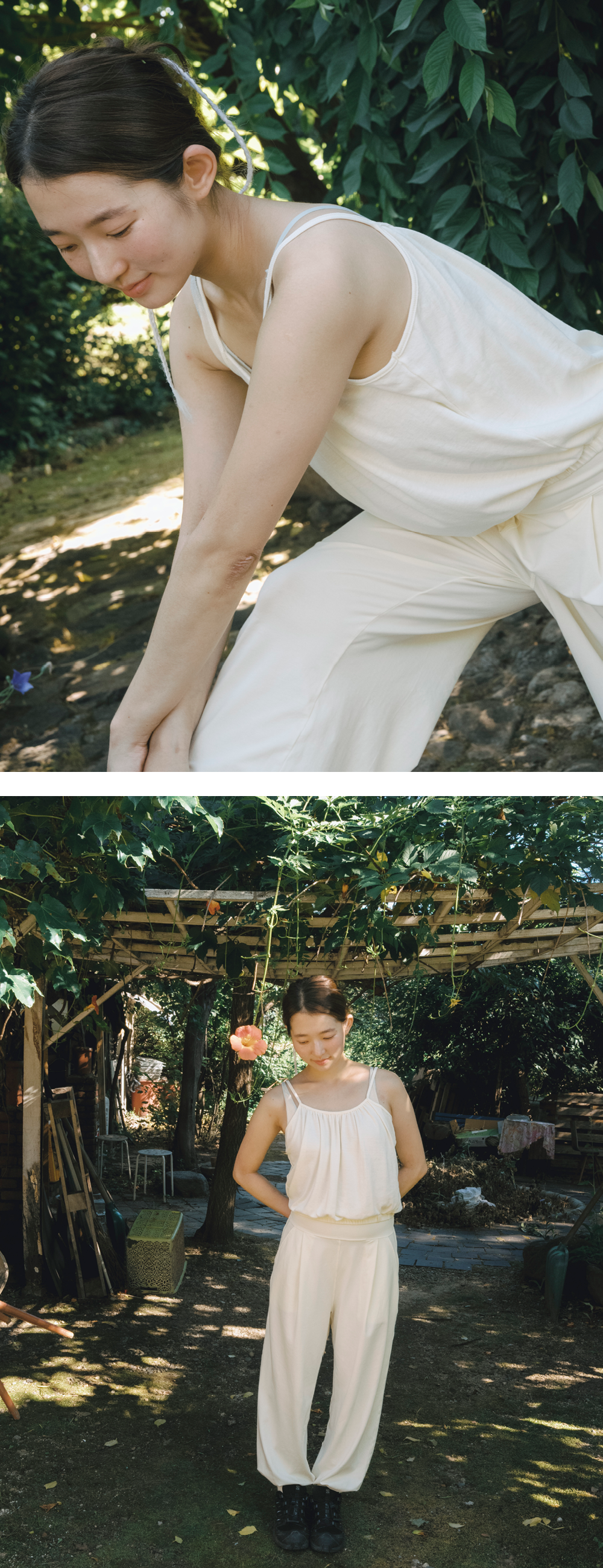 옷을 제작한 후 자연에서 얻은 식물 염료로 색을 입히는 방식입니다.