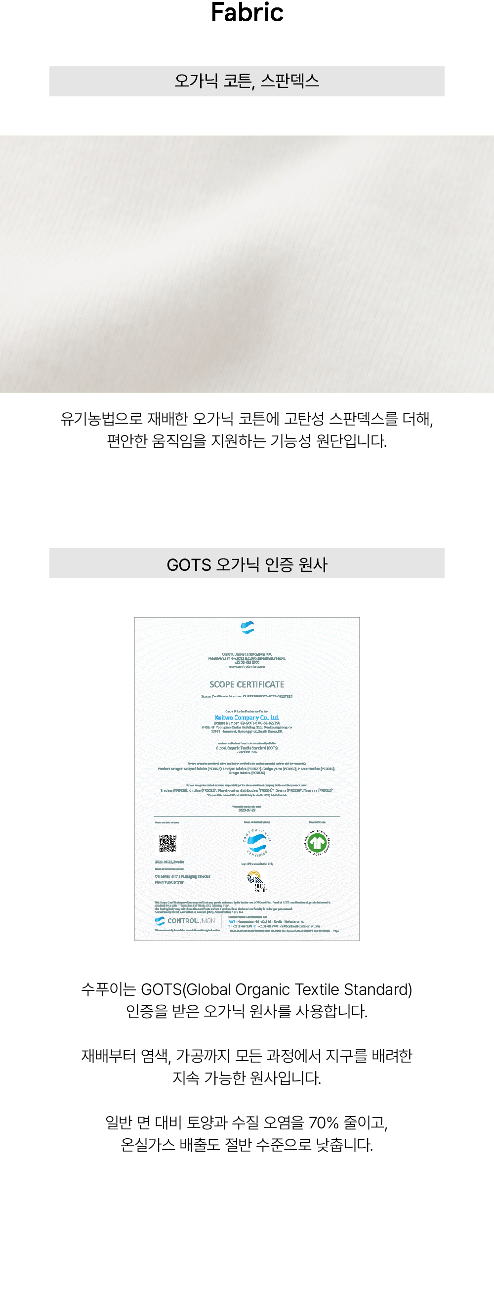 부드러운 오가닉 코튼 스판 원단으로 만든 롱팬츠.