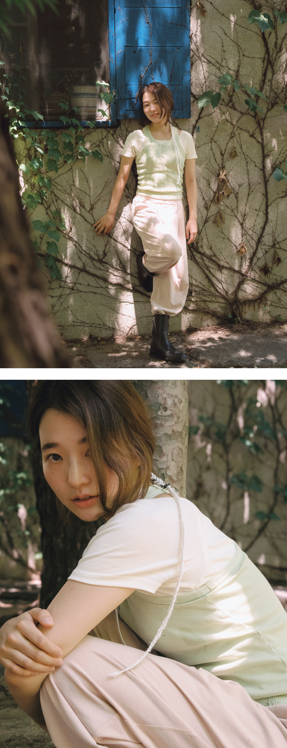 옷을 제작한 후 자연에서 얻은 식물 염료로 색을 입히는 방식입니다.