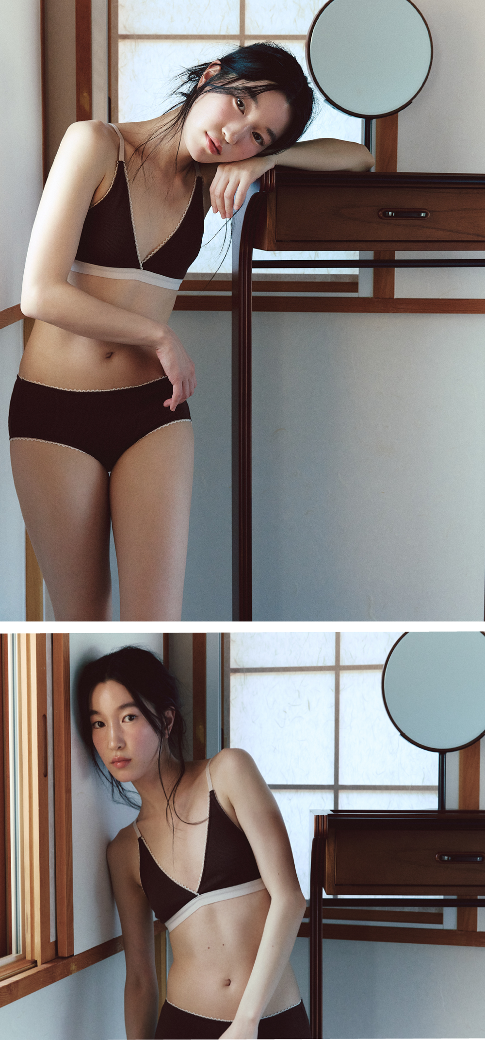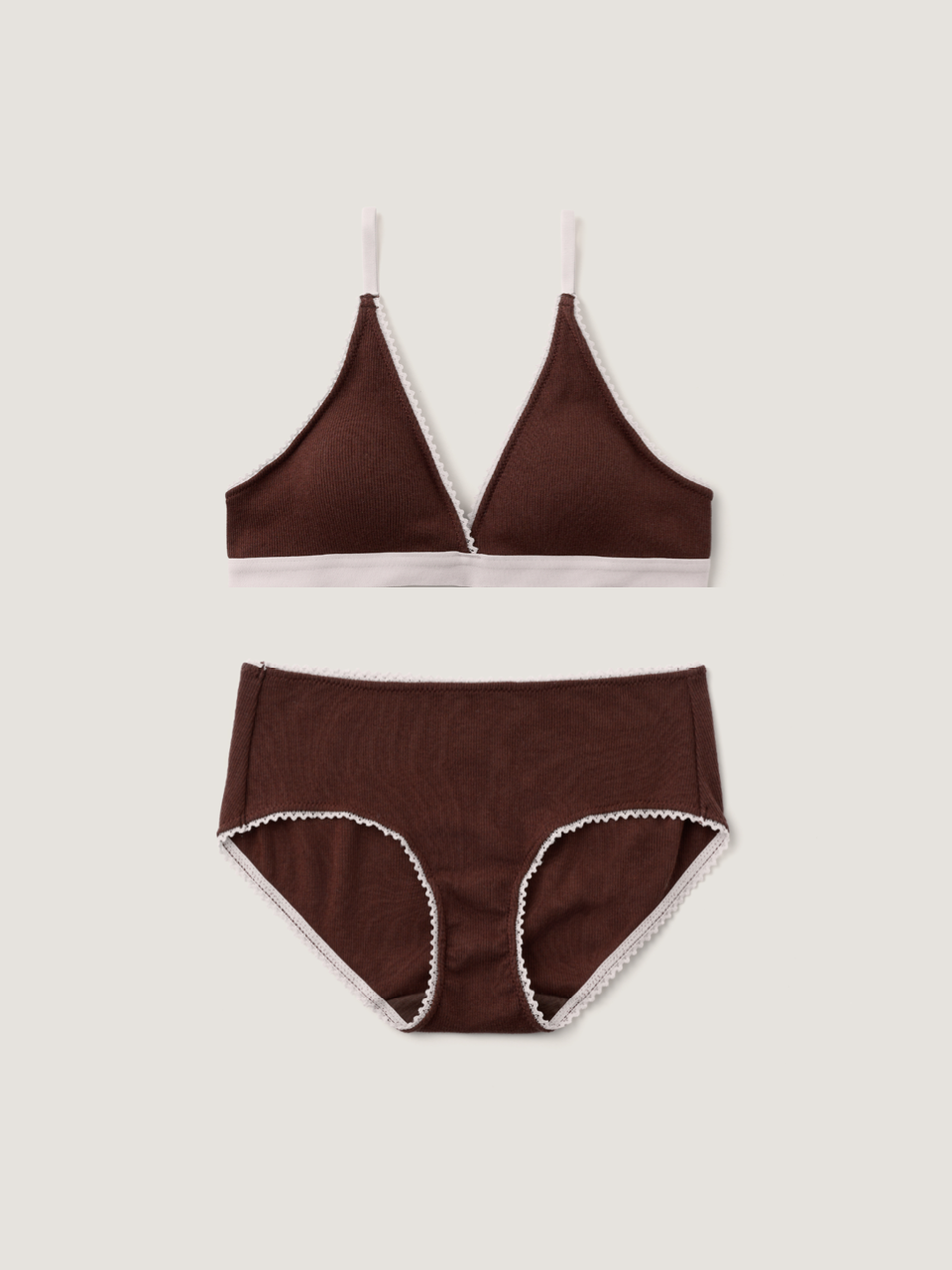 (set) Triangle ribbed modal bra & panties in acorn_삼각 리브드 모달 브라&팬티 에이콘