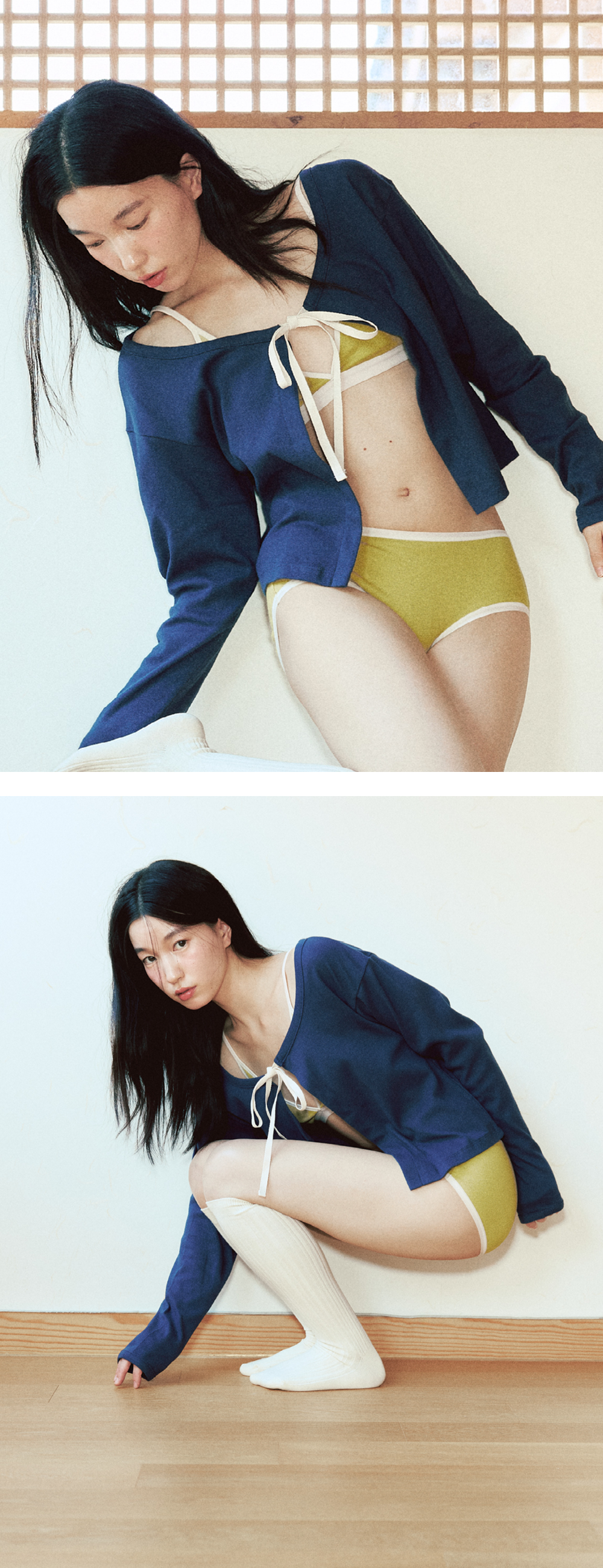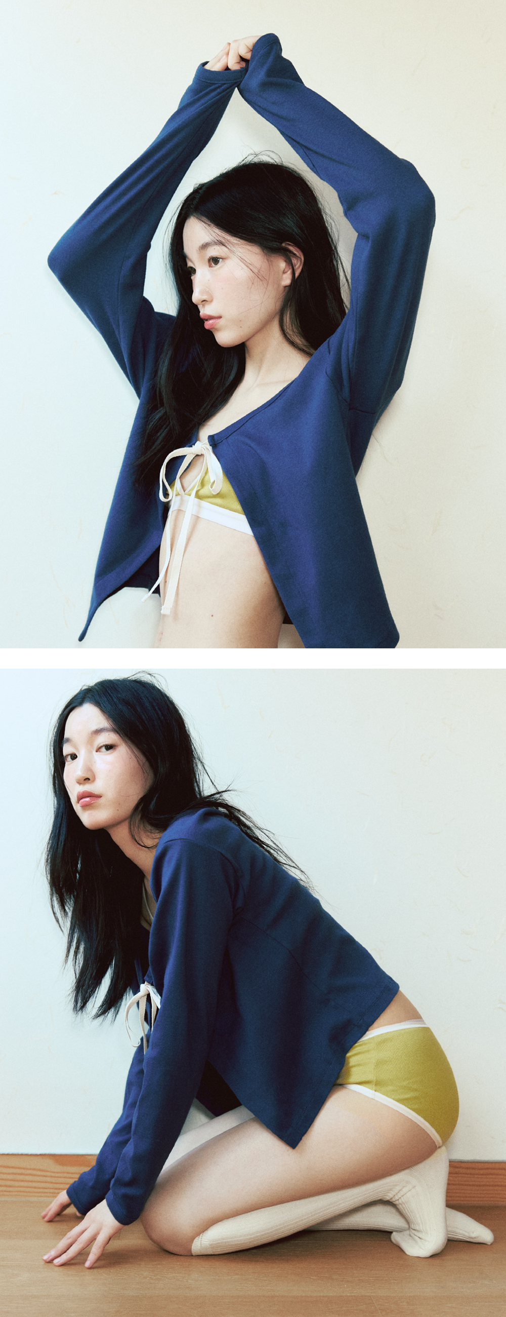Fluffy organic cotton string cardigan in Navy_플러피 오가닉 스트링 가디건 네이비