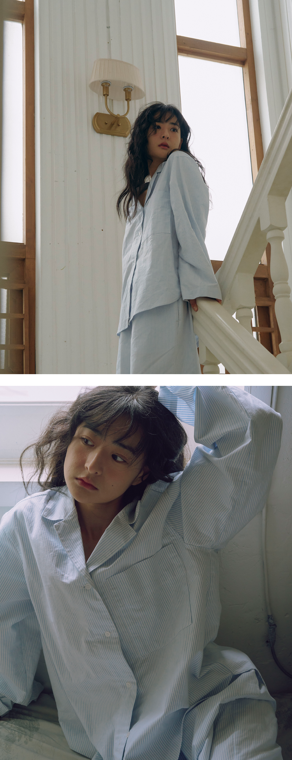 Striped organic cotton pajama shirt_스트라이프 오가닉코튼 파자마 셔츠