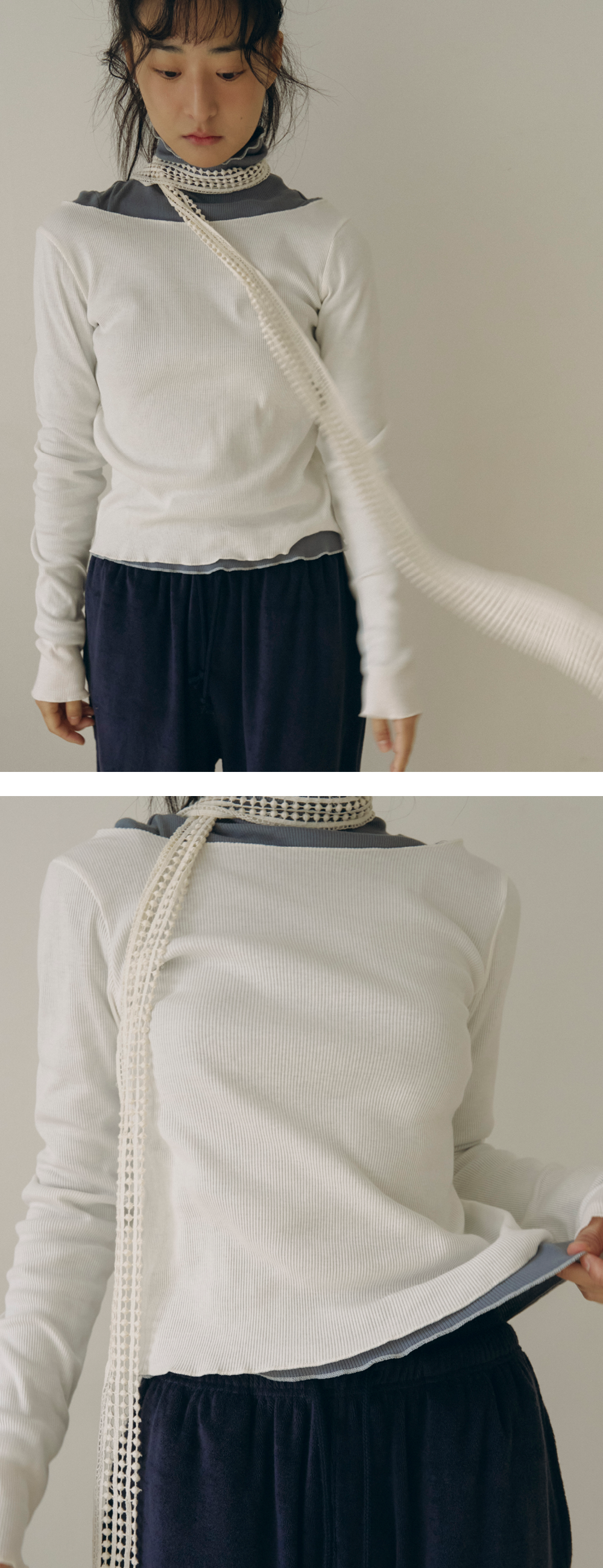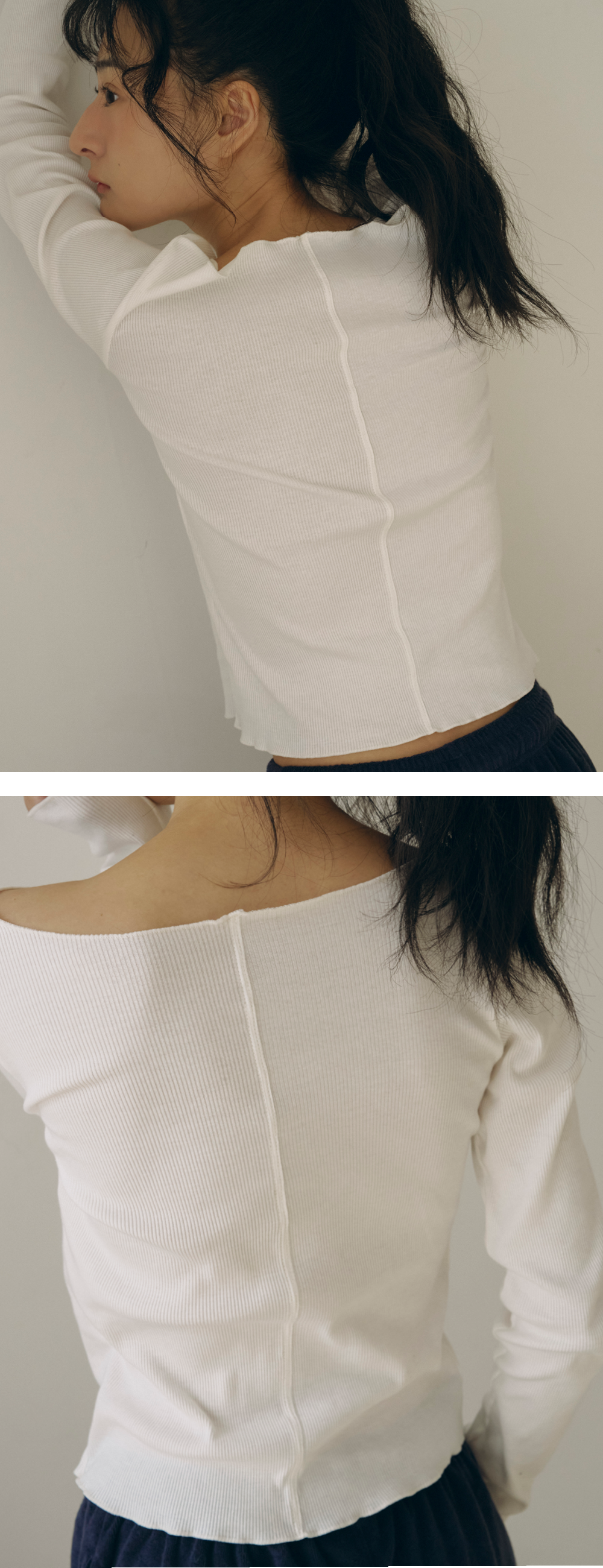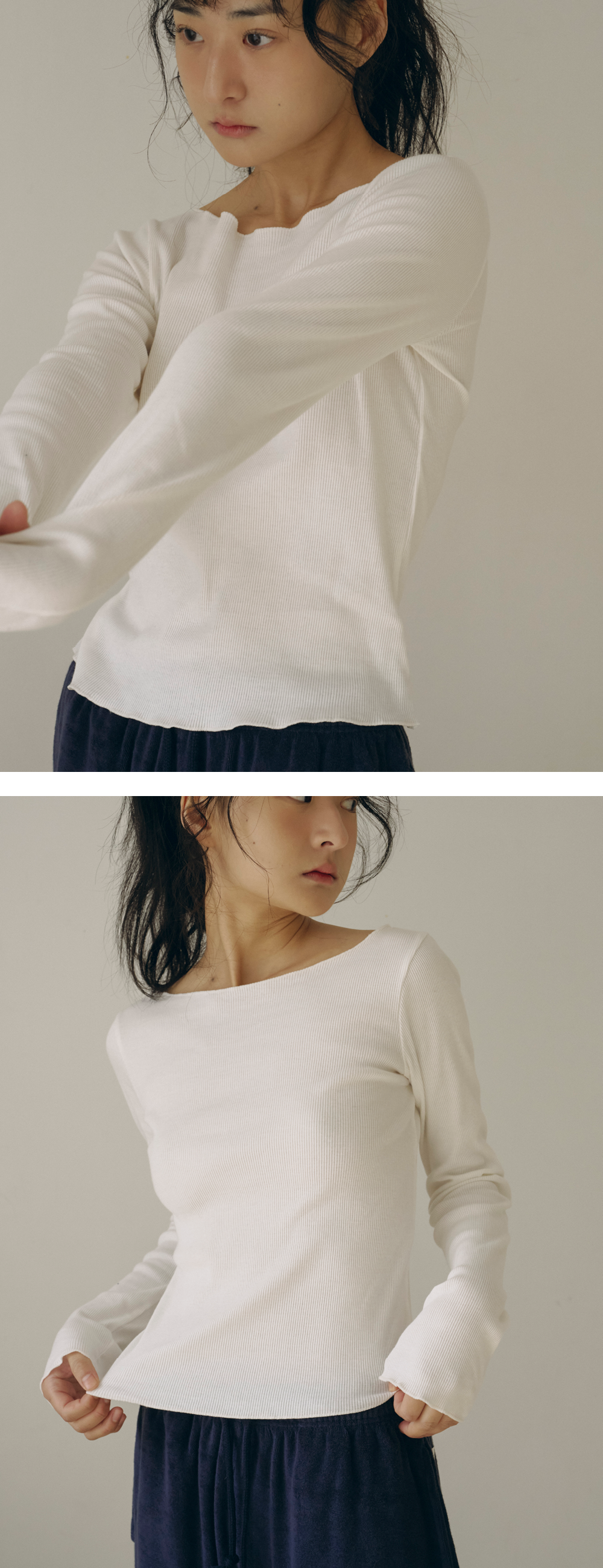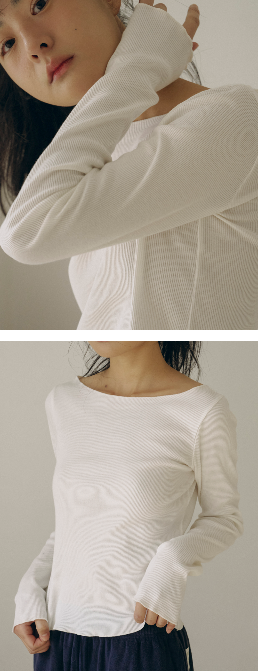 Ribbed organic cotton boatneck in ivory_리브드 보트넥 티 아이보리