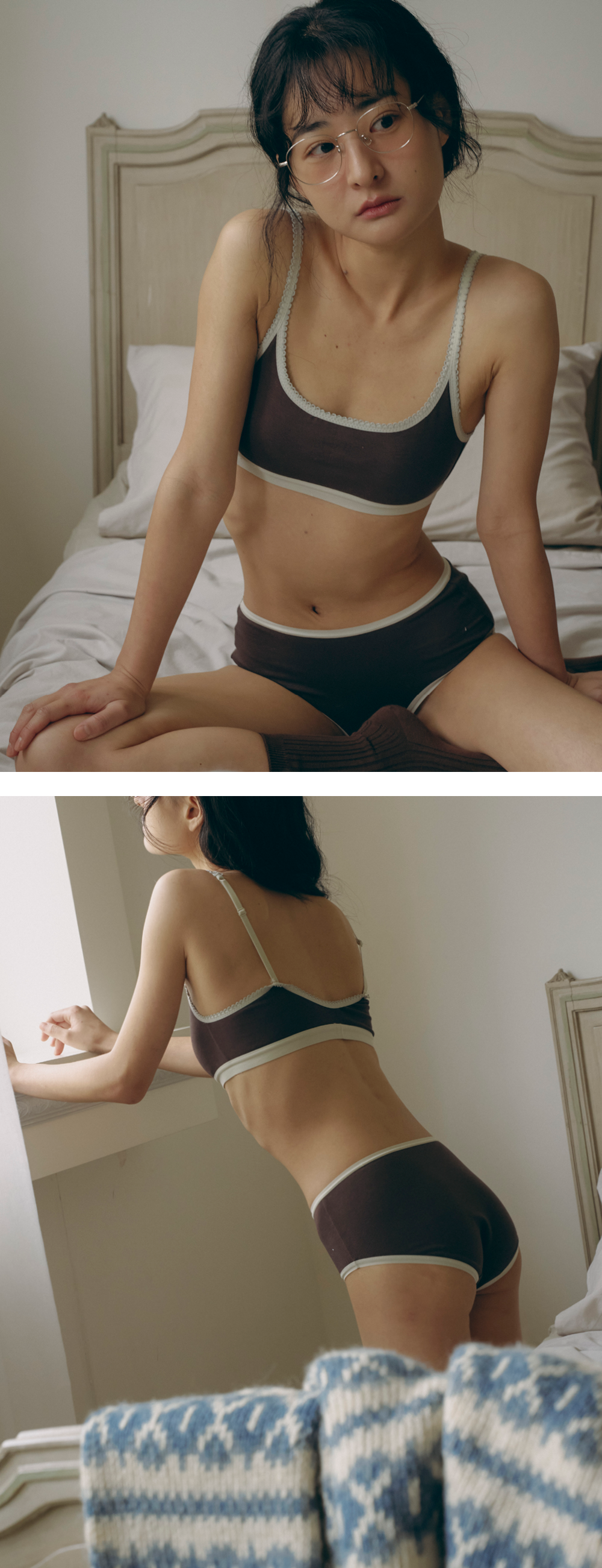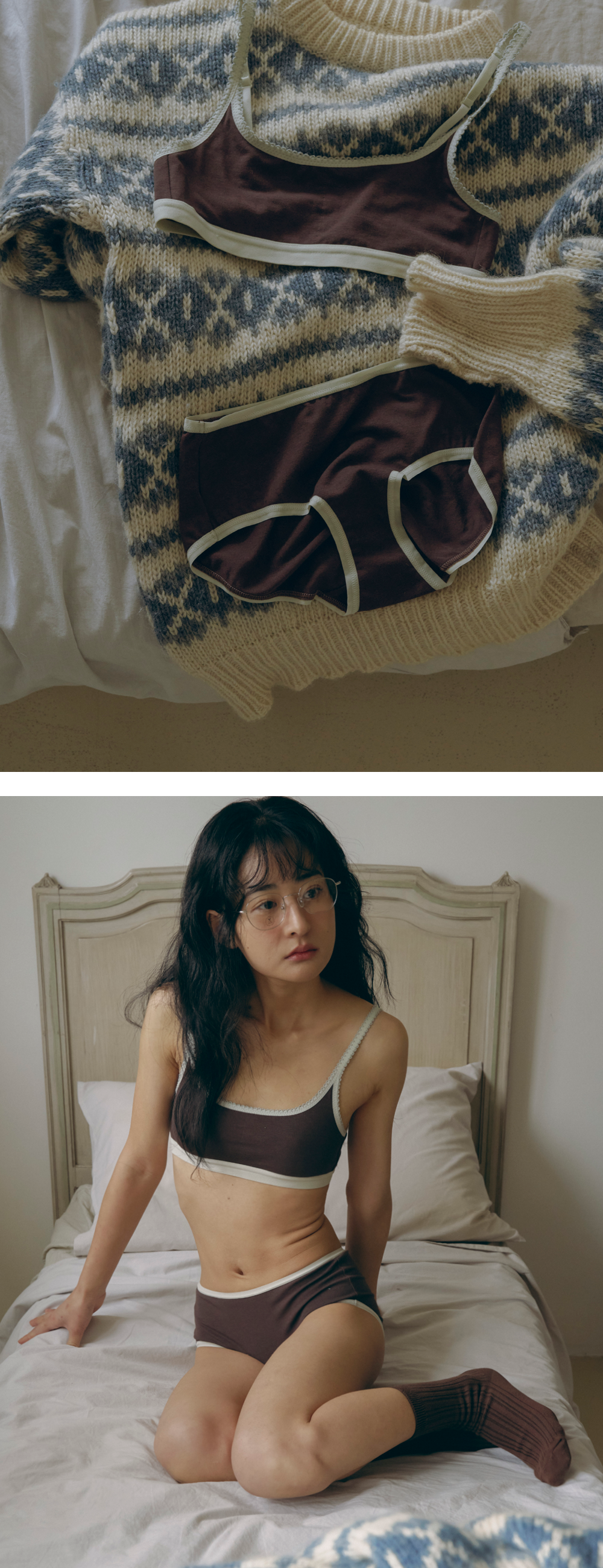 (set) Square soft bamboo bra & panties in Cottage brown_스퀘어 뱀부 브라&팬티 코티지브라운