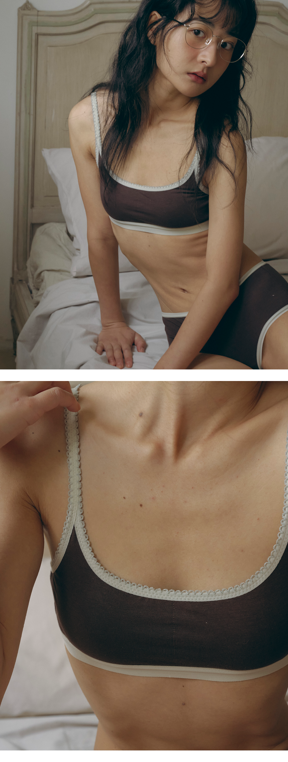 Square soft bamboo bra in cottage brown_스퀘어넥 뱀부 브라 코티지브라운