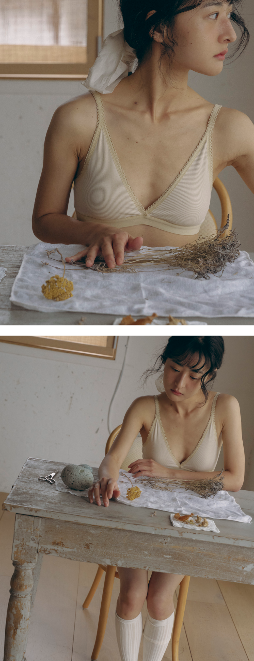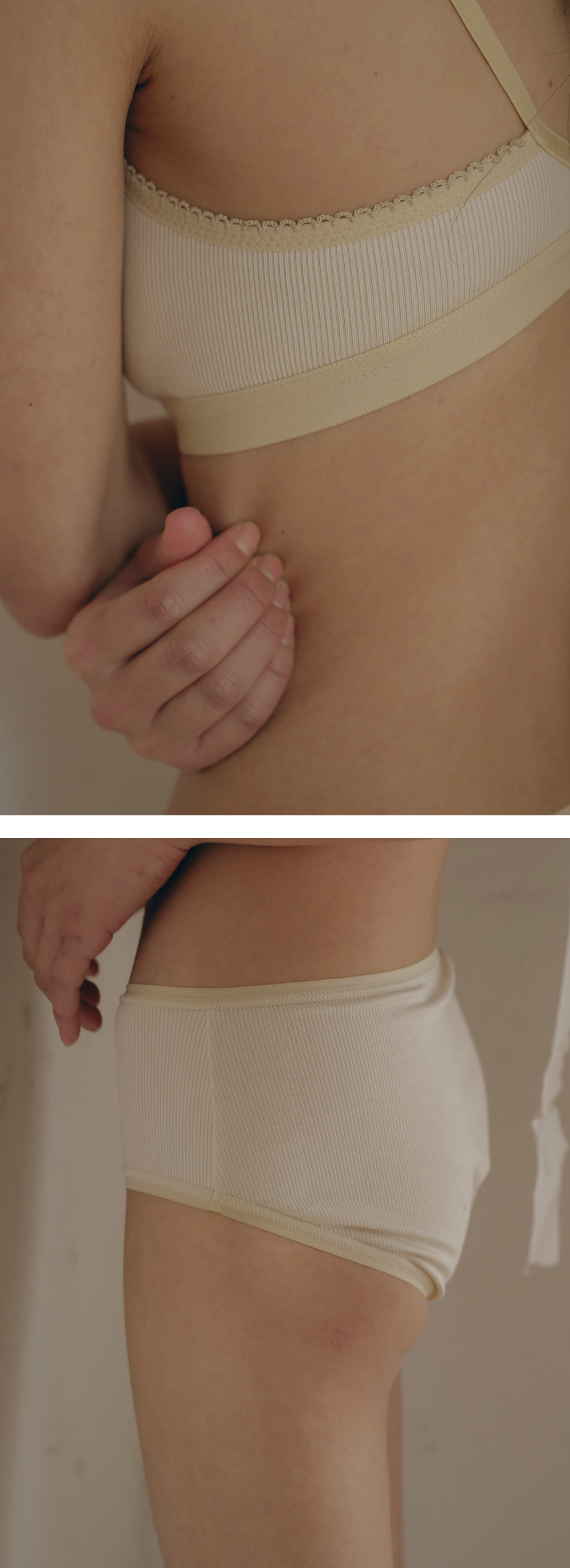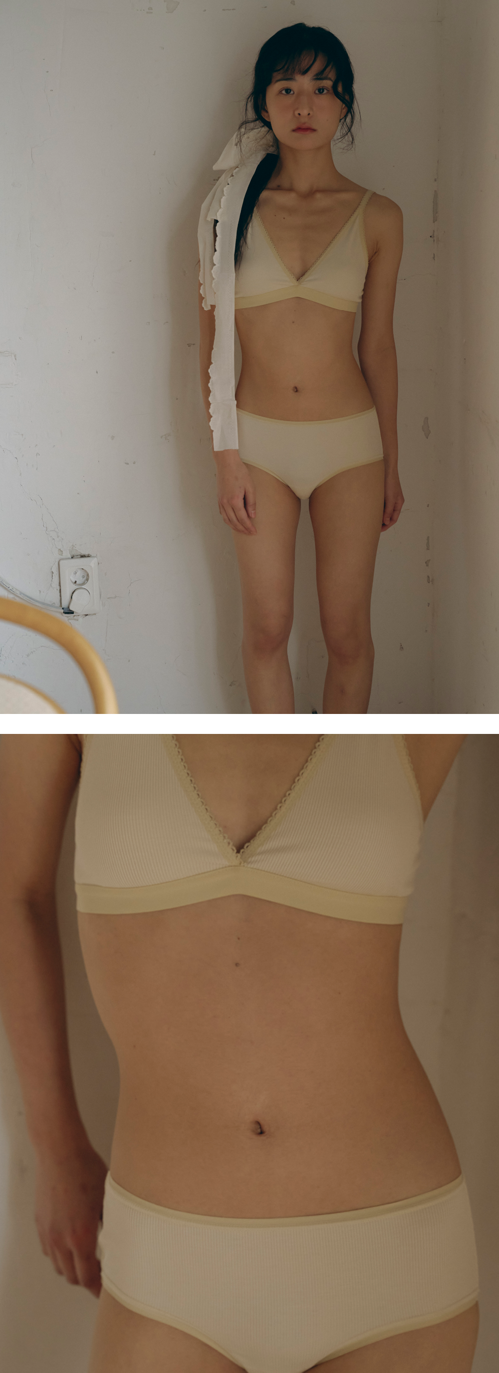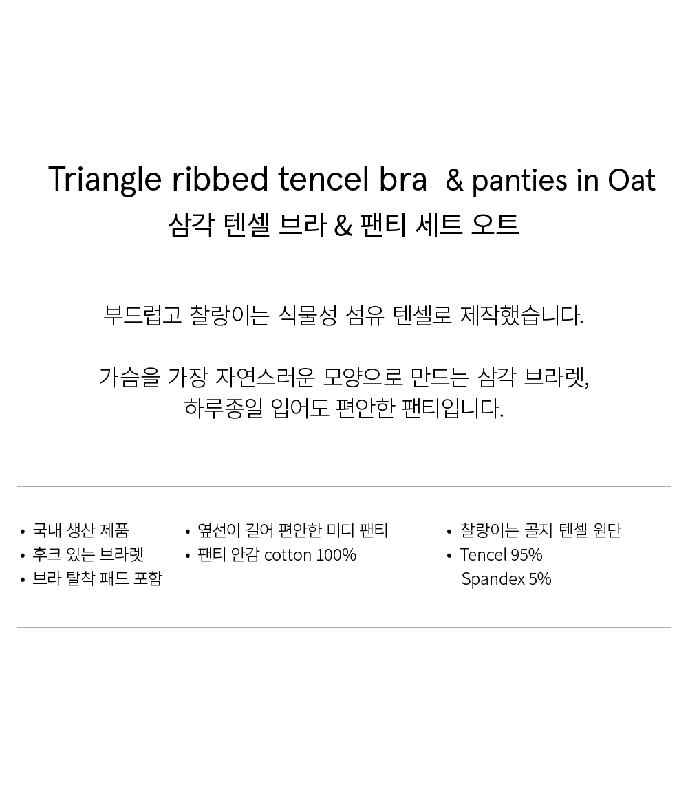 (set) Triangle ribbed tencel bra & panties in Oat_삼각 리브드 텐셀 브라&팬티 오트