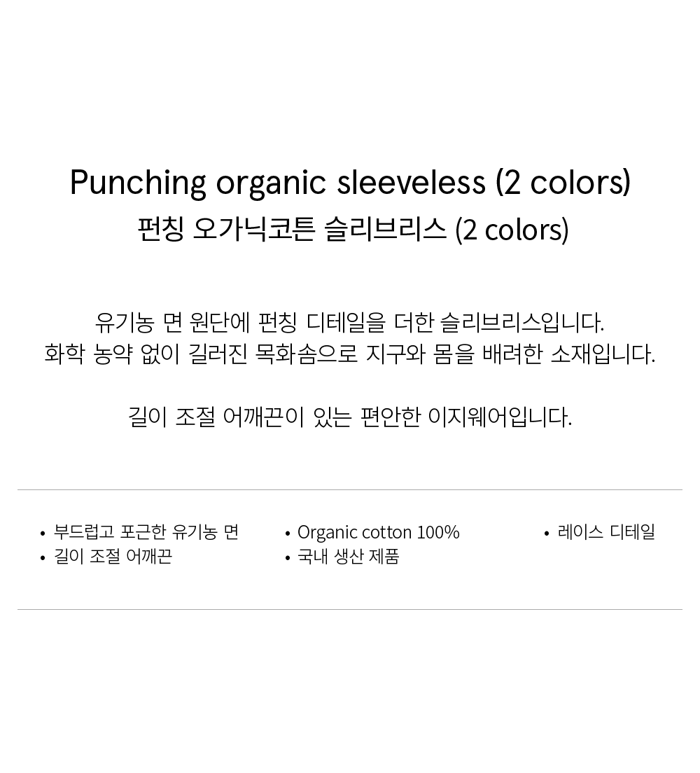 Punching organic cotton sleeveless_펀칭 오가닉 코튼 슬리브리스 (2 colors)