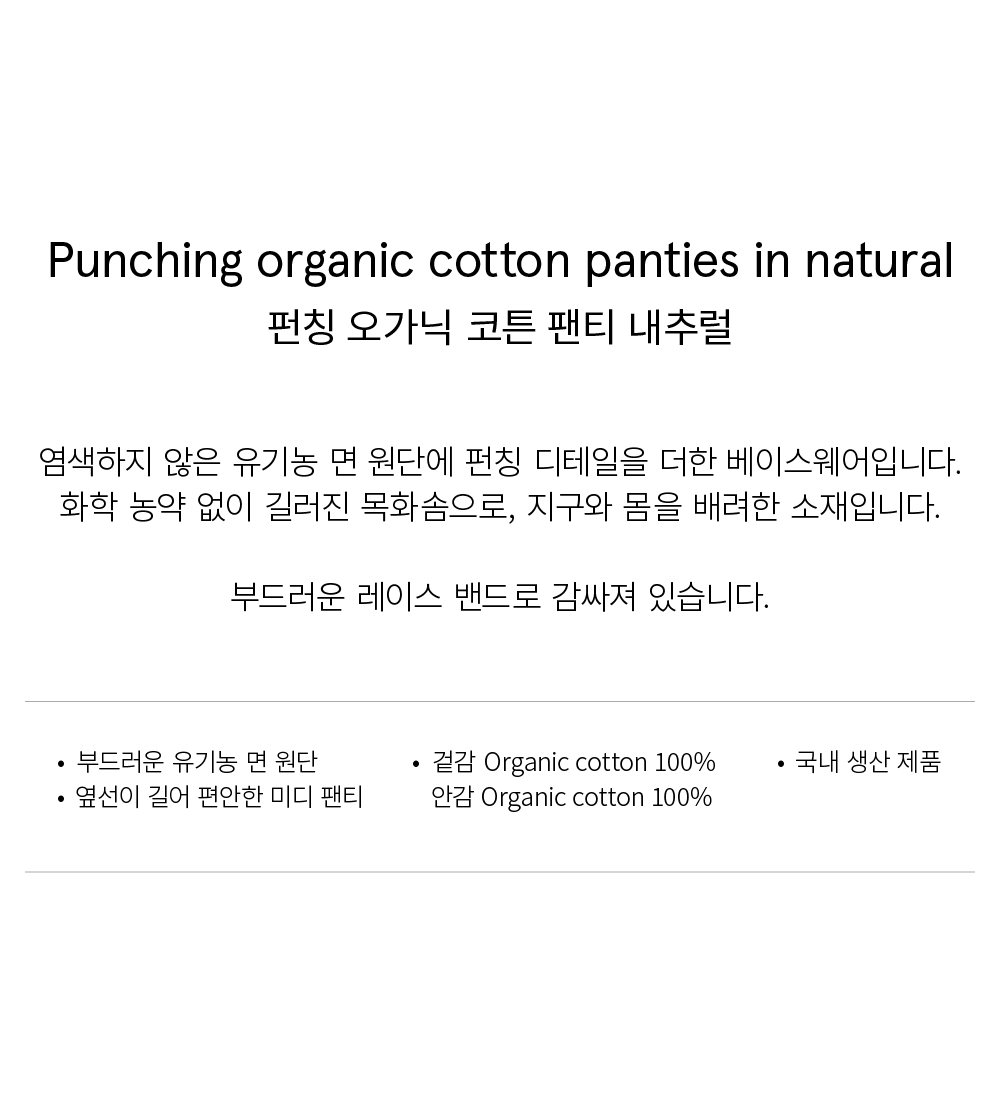 Punching organic cotton panties in Natural_펀칭 오가닉 코튼 내추럴 팬티