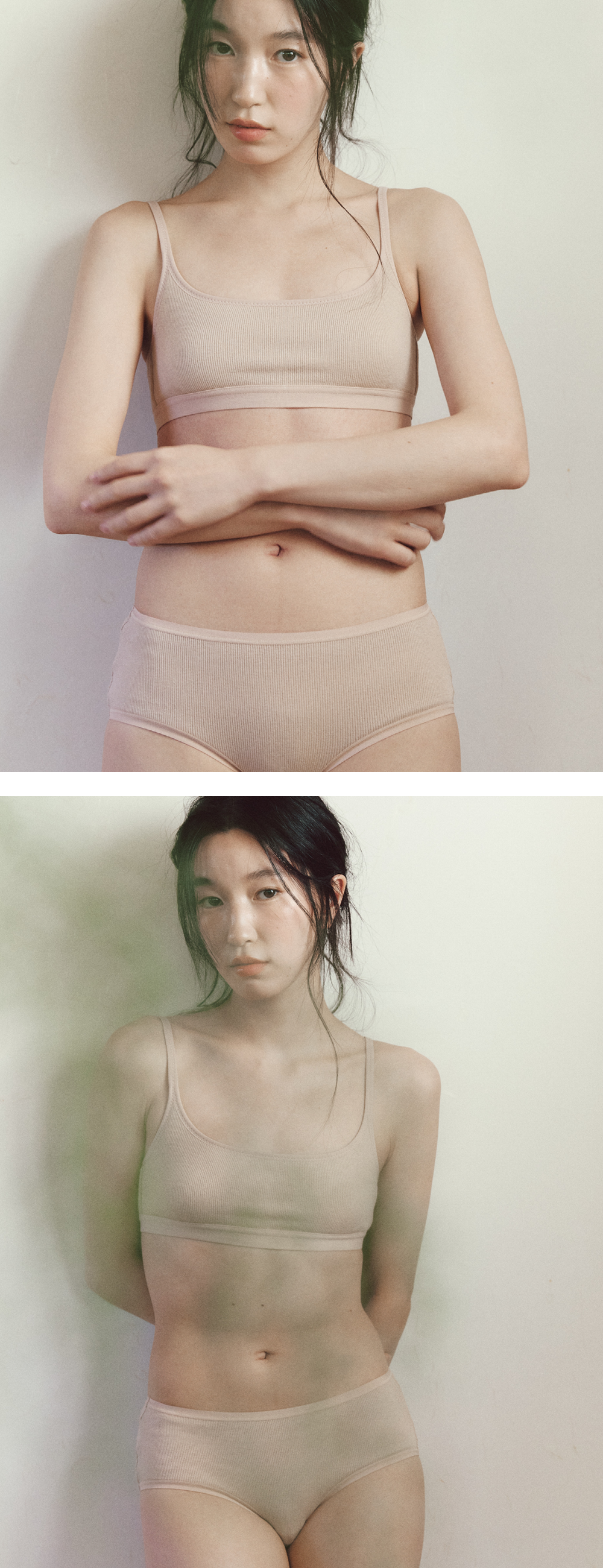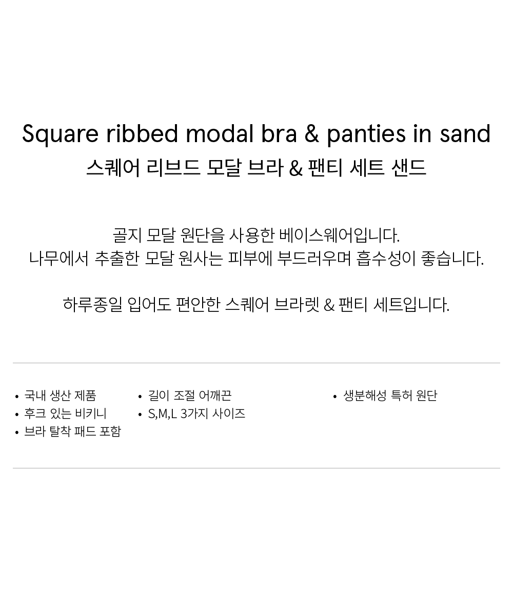 (set) Sqaure ribbed modal bra & panties in Sand_스퀘어 리브드 모달 브라&팬티 샌드