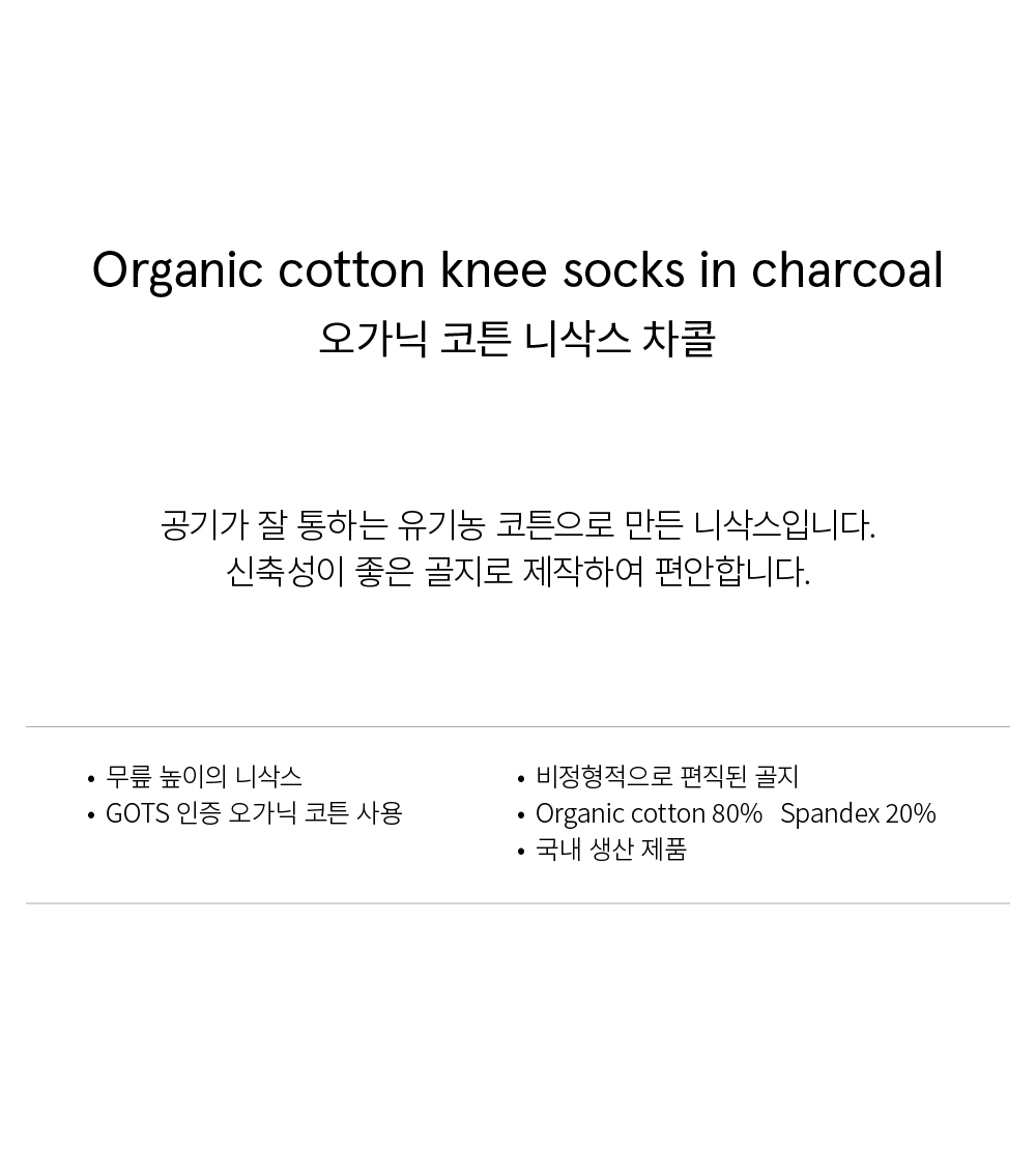 Organic cotton knee socks in charcoal_오가닉 코튼 니삭스 차콜