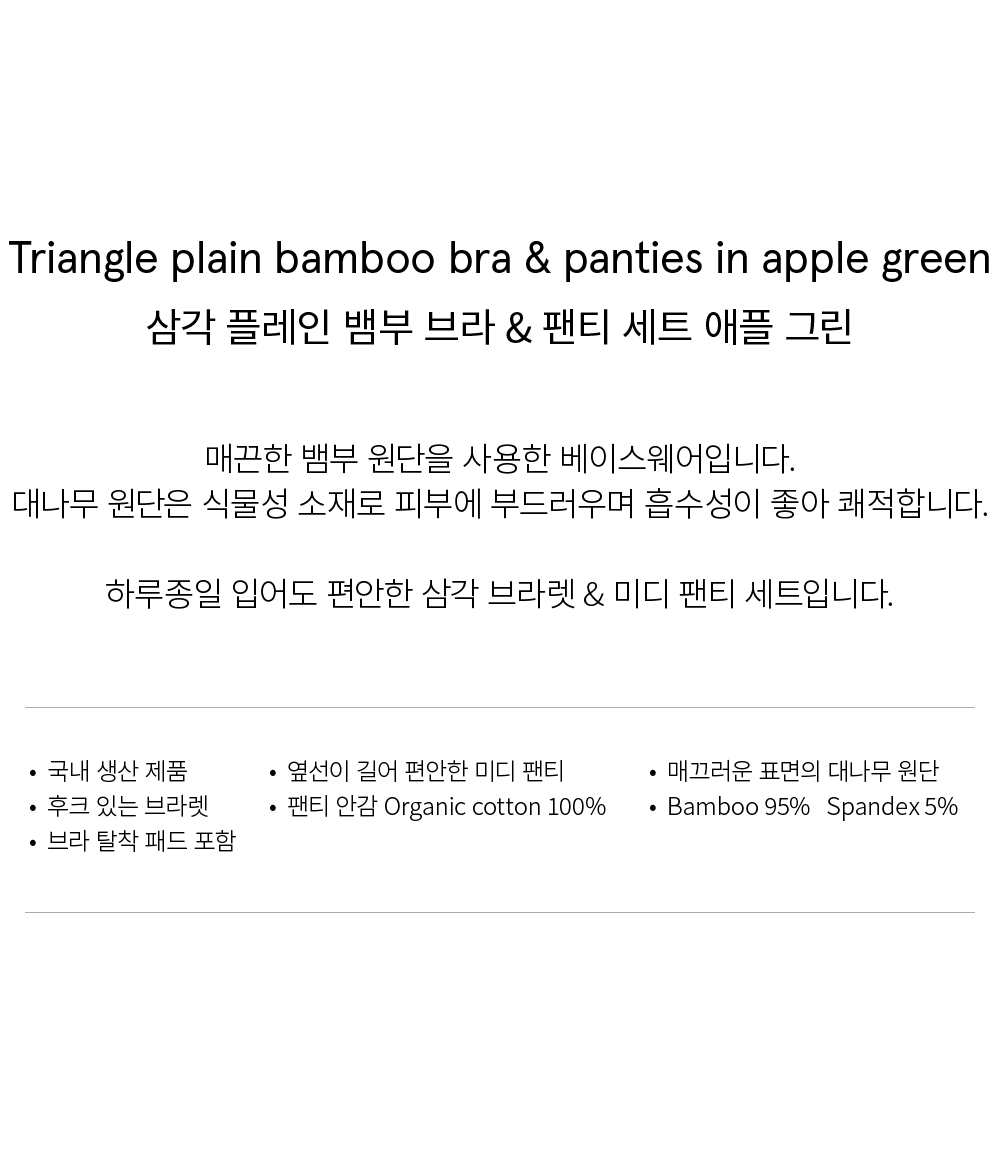 (set) Triangle bamboo bra & panties in Apple green_삼각 뱀부 브라&팬티 애플그린