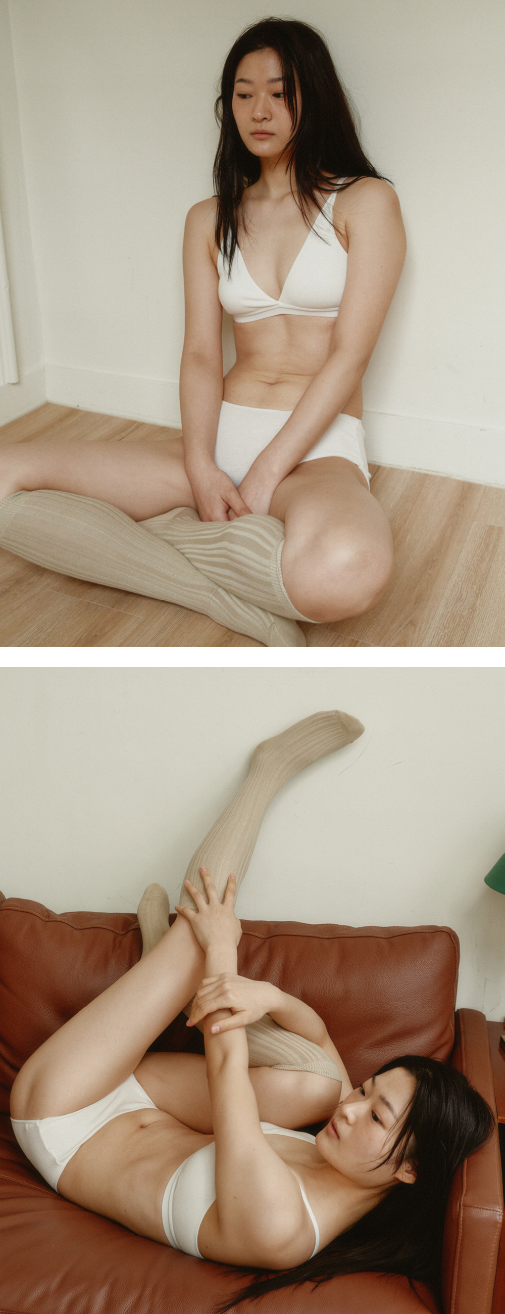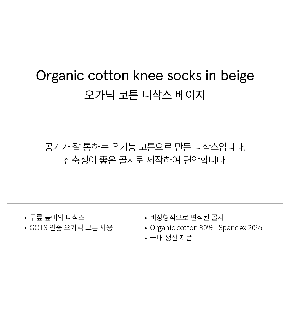 Organic cotton knee socks in beige_오가닉 코튼 니삭스 베이지