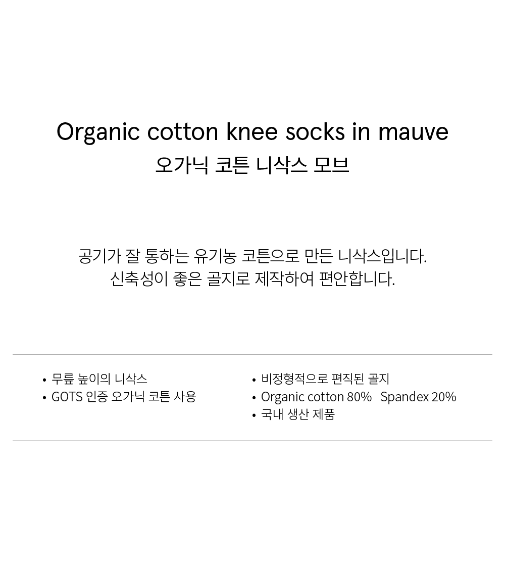 Organic cotton knee socks in mauve_오가닉 코튼 니삭스 모브