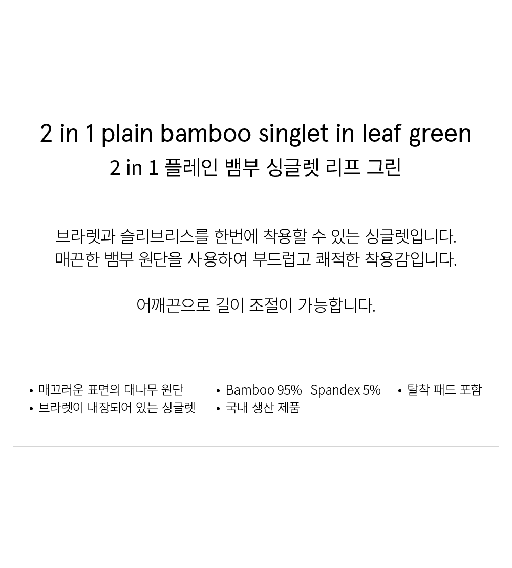2 in 1 soft bamboo singlet in leaf green_싱글렛 리프그린
