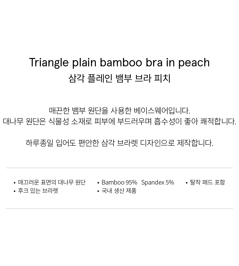 Triangle soft bamboo bra in peach_삼각 소프트 뱀부 브라 피치