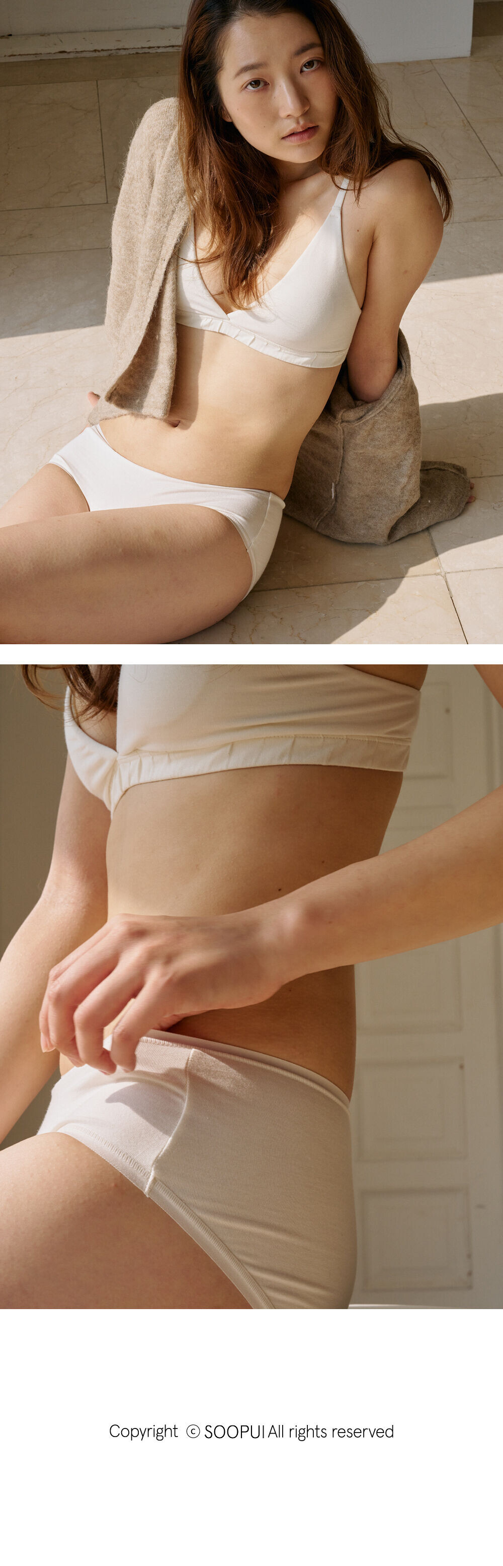 (set) Triangle soft wrinkled bra & panties in natural_삼각 뱀부 주름 브라&팬티 내추럴