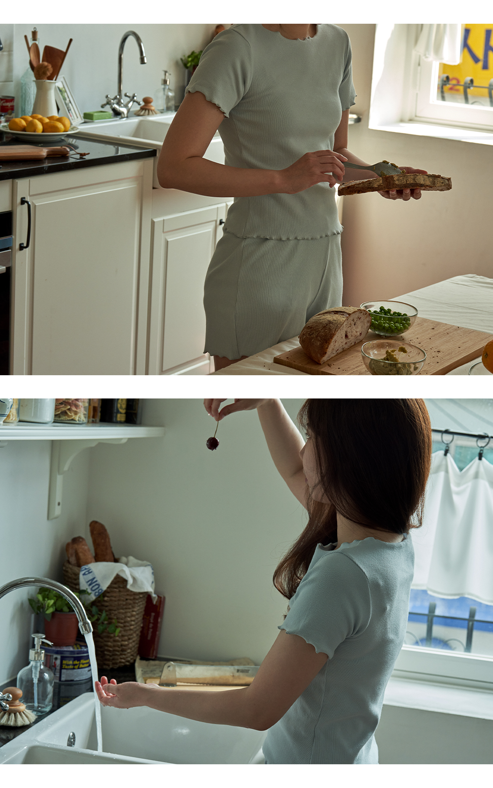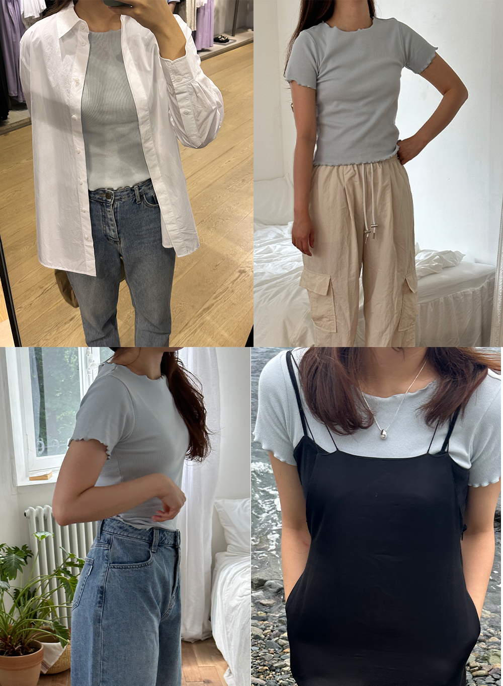 Organic cotton wave tee in blue - 오가닉 코튼 골지 웨이브 티셔츠 블루