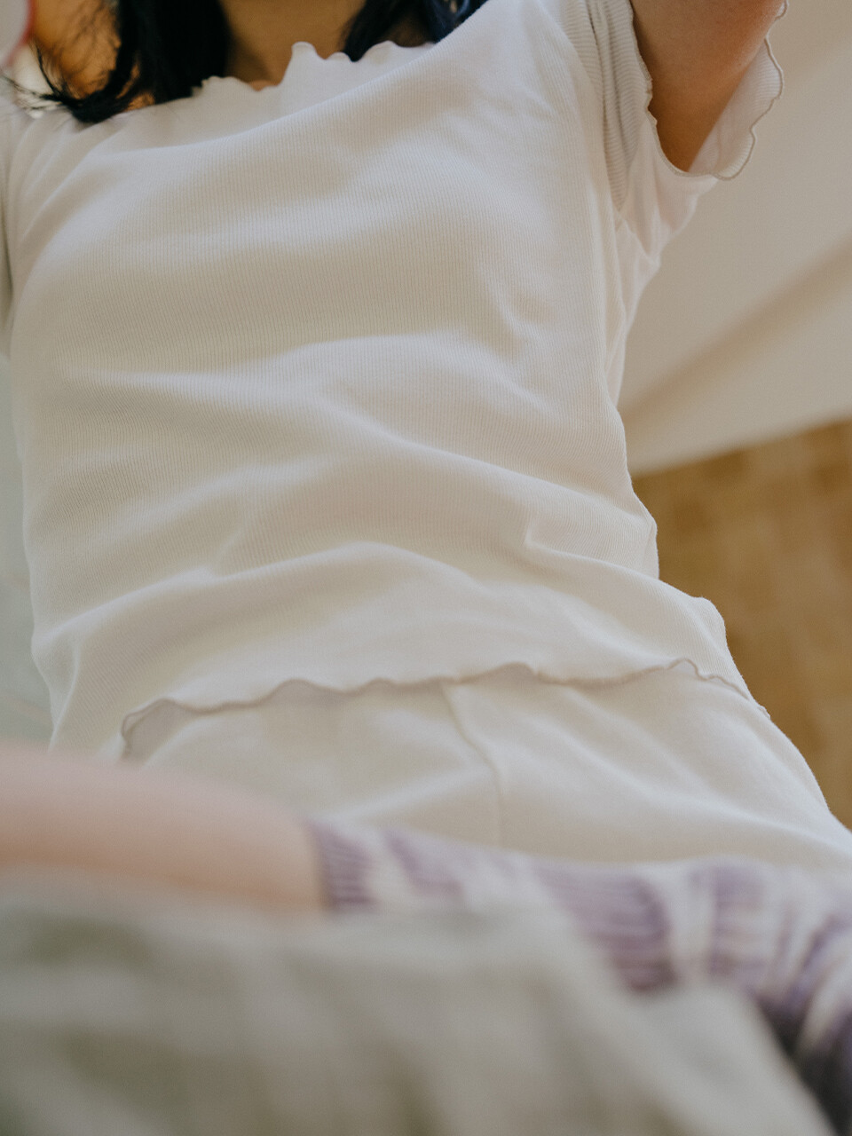 Organic cotton wave tee in white - 오가닉 코튼 골지 웨이브 티셔츠 화이트