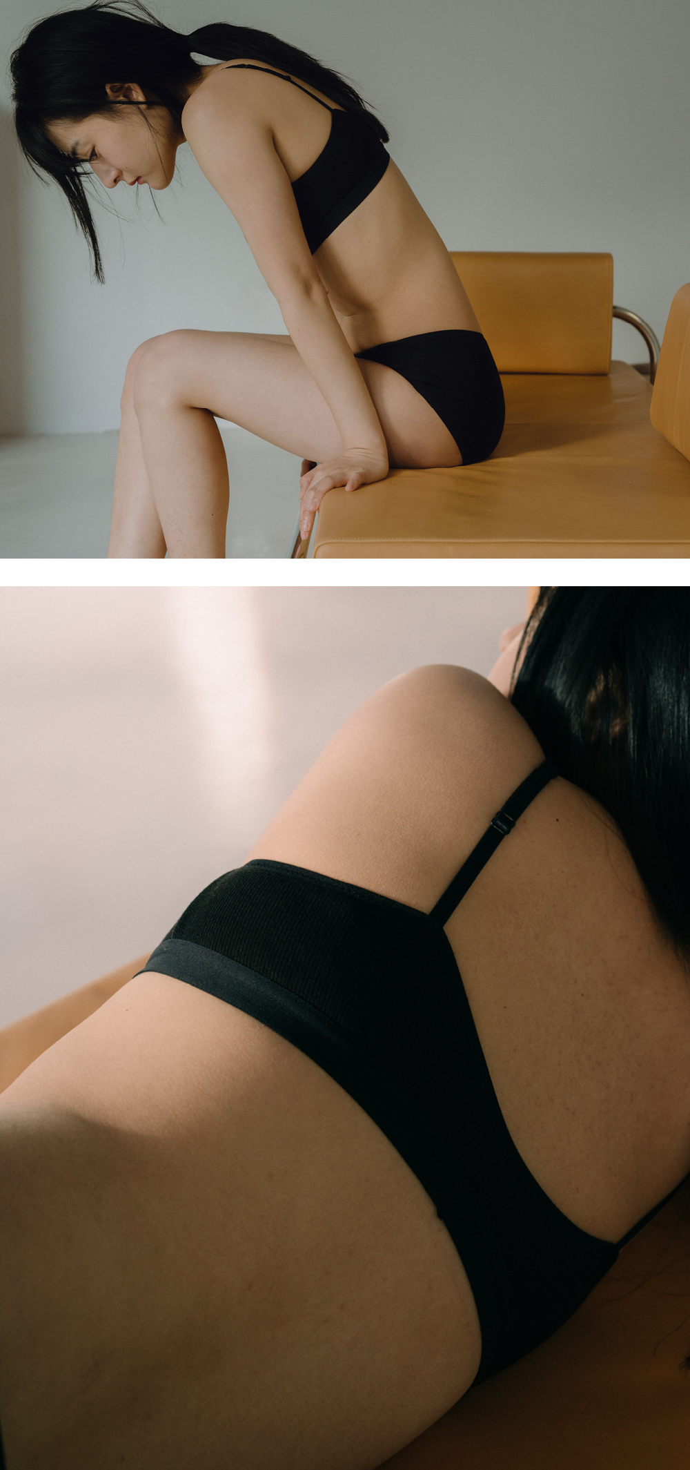 (set) Square ribbed modal bra & panties in Black_스퀘어 리브드 모달 브라&팬티 블랙