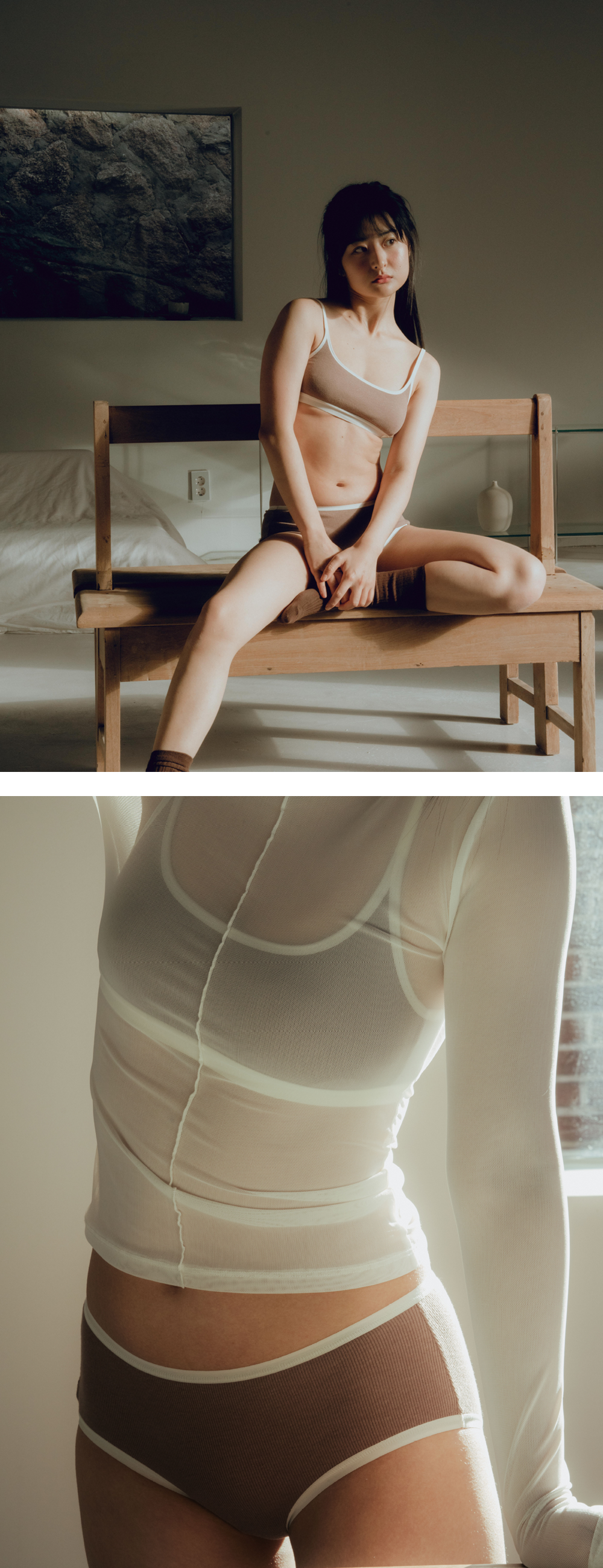 (set) Square ribbed modal bra & panties in Marron_스퀘어 리브드 모달 브라&팬티 마롱