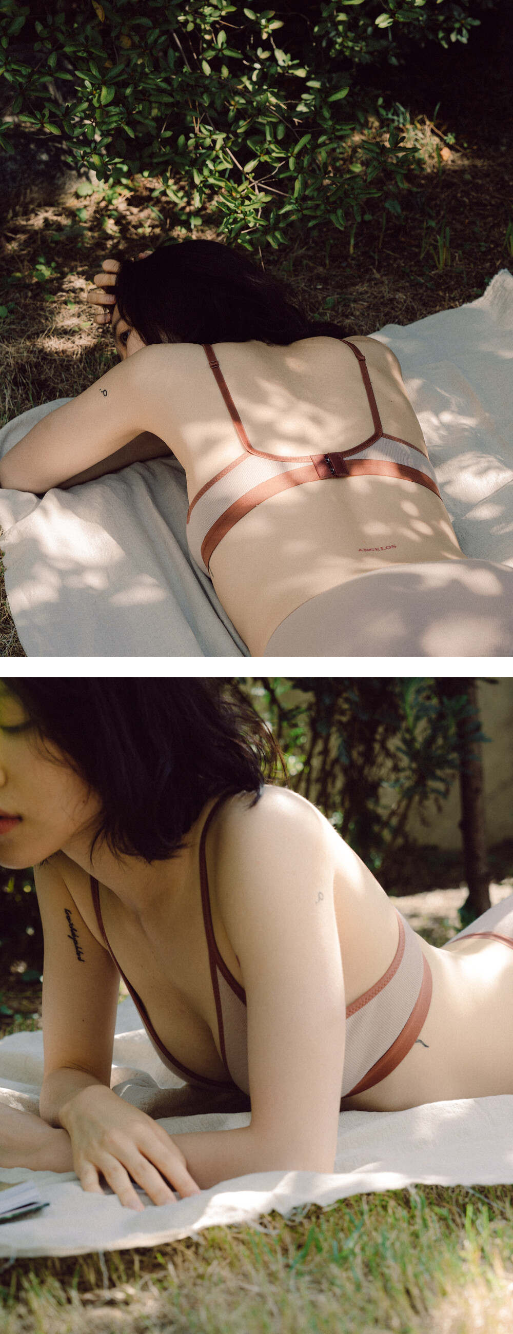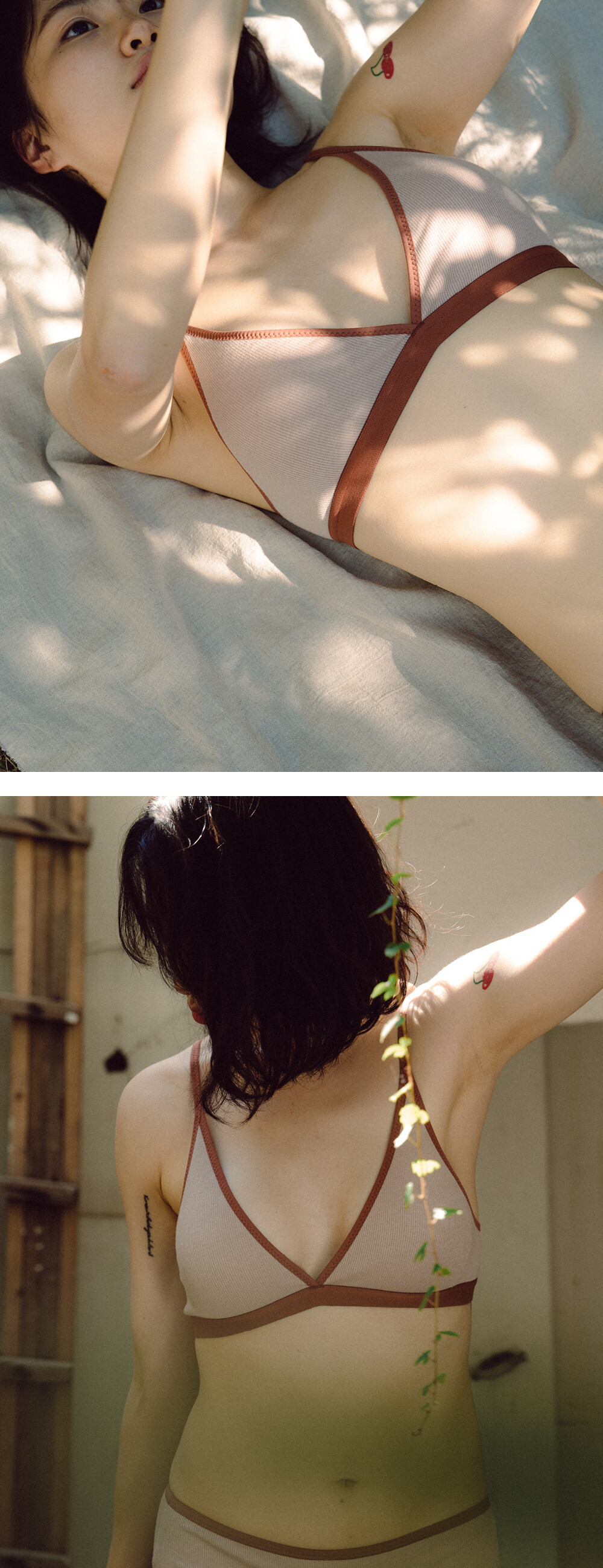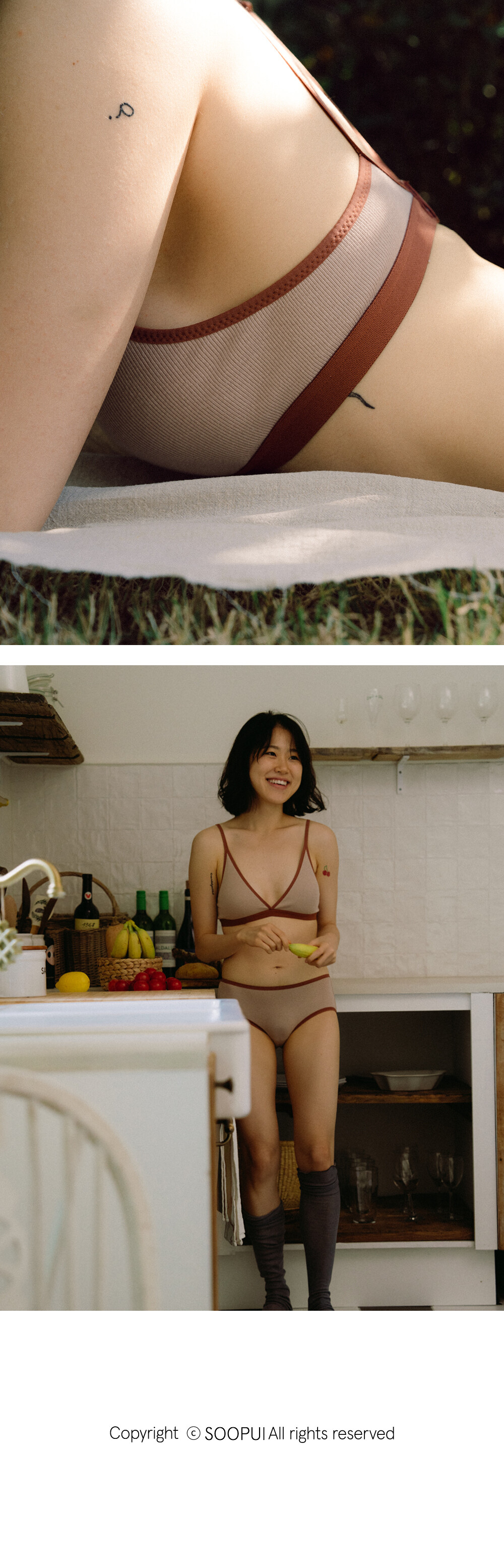Triangle ribbed modal bra in red bean_삼각 리브드 모달 브라 레드빈
