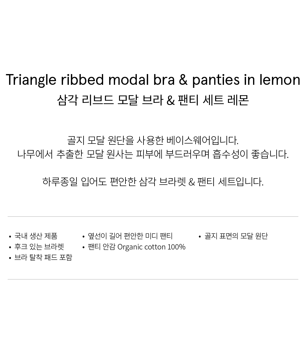 (set) Triangle ribbed modal bra & panties in Lemon_삼각 리브드 모달 브라&팬티 레몬