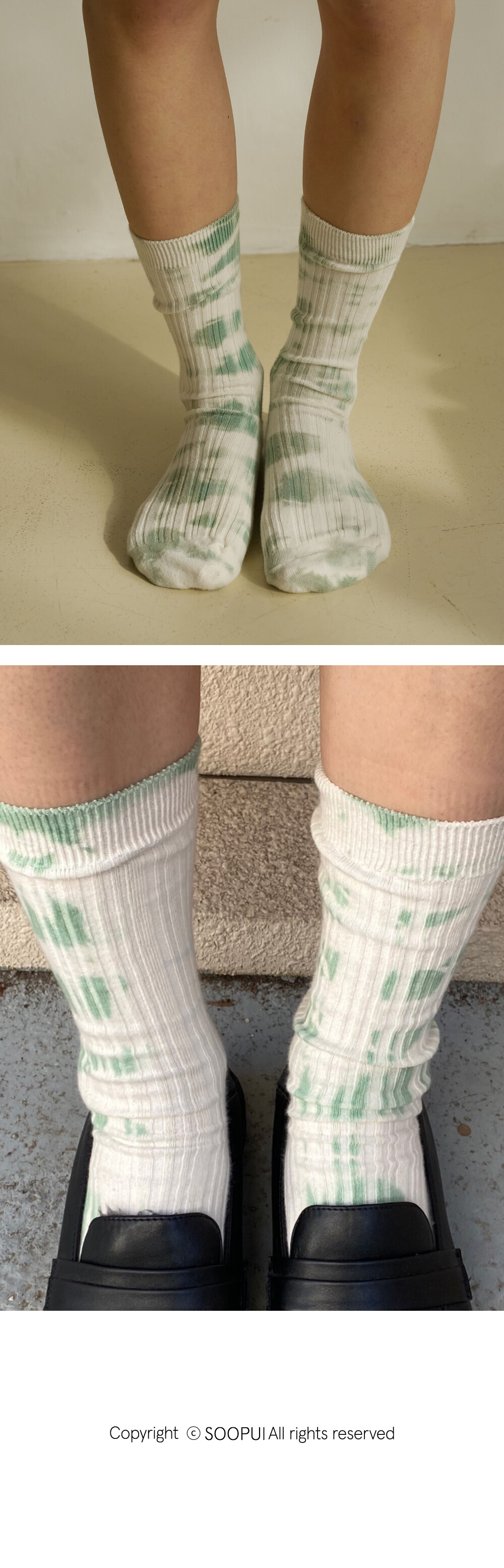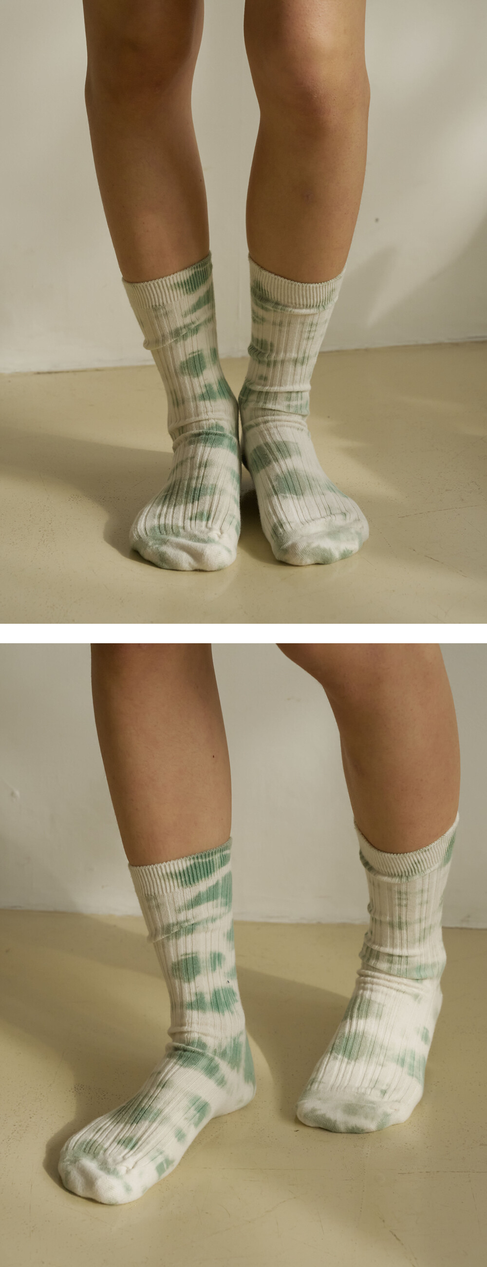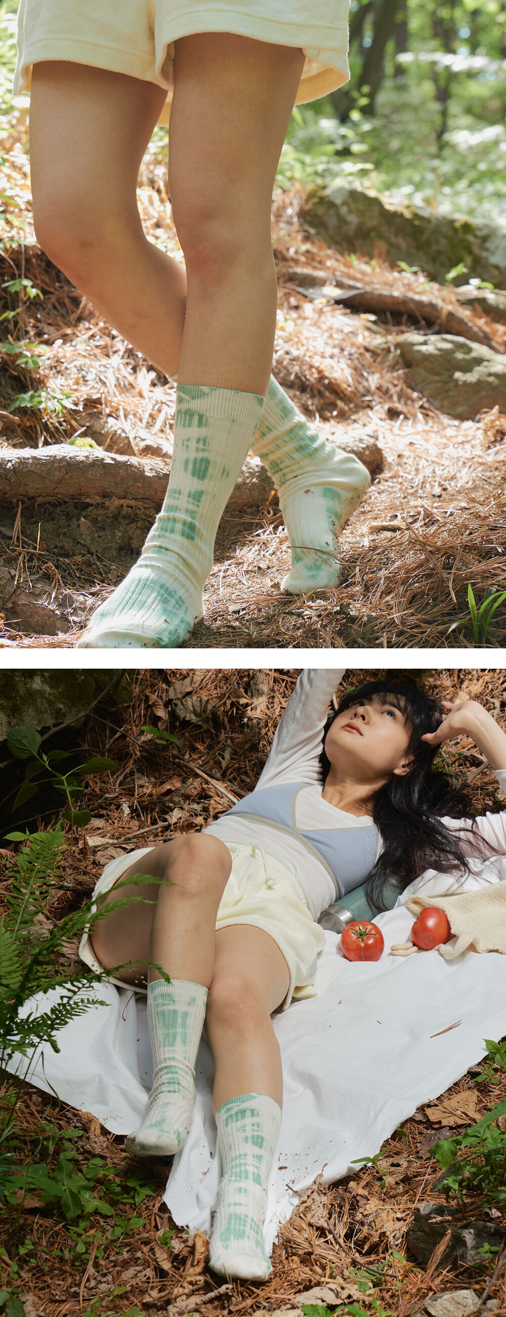 Plants tie-dye socks in green_식물 염색 양말 그린