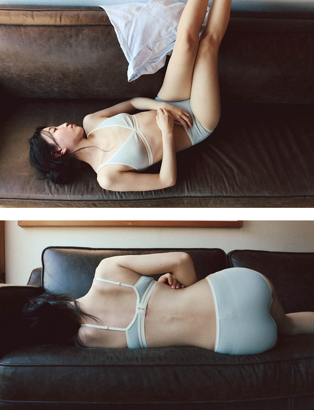 (set) Triangle ribbed modal bra & panties in Gray_삼각 리브드 모달 브라&팬티 그레이