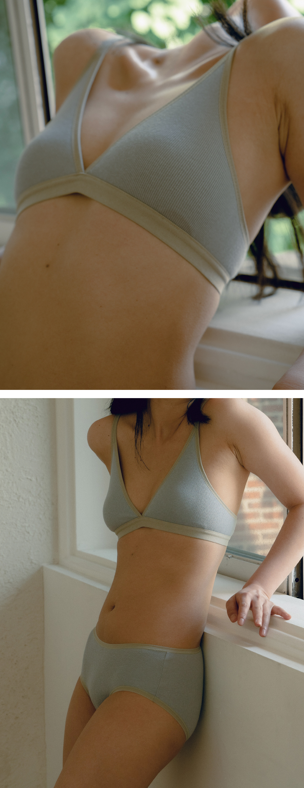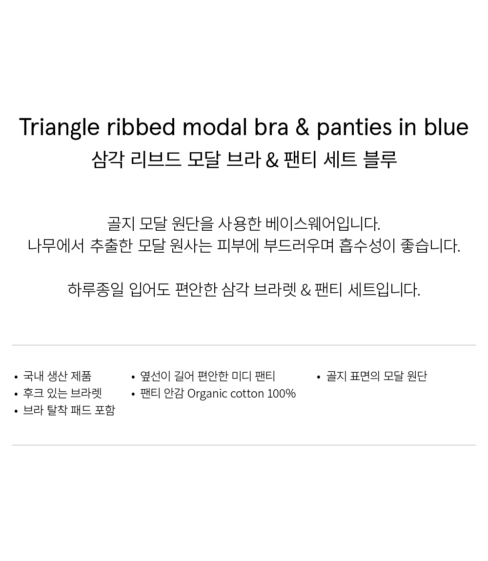(set) Triangle ribbed modal bra & panties in Blue_삼각 리브드 모달 브라&팬티 블루