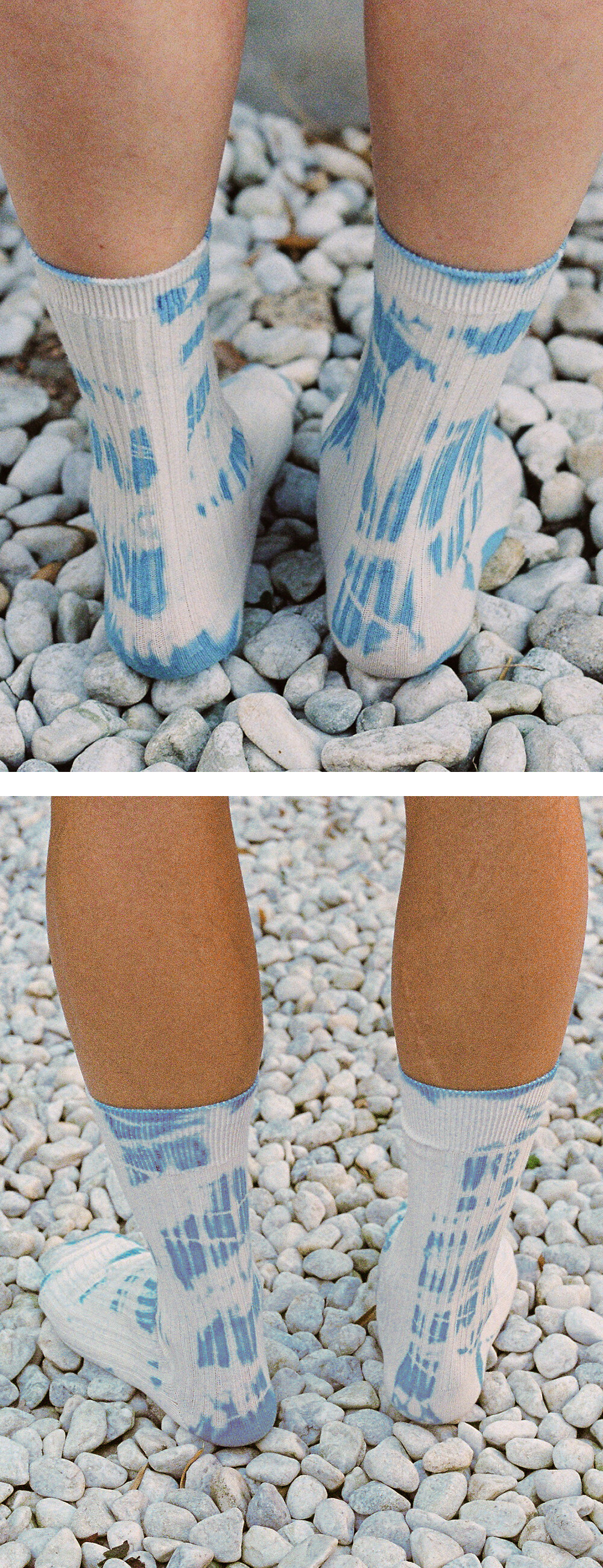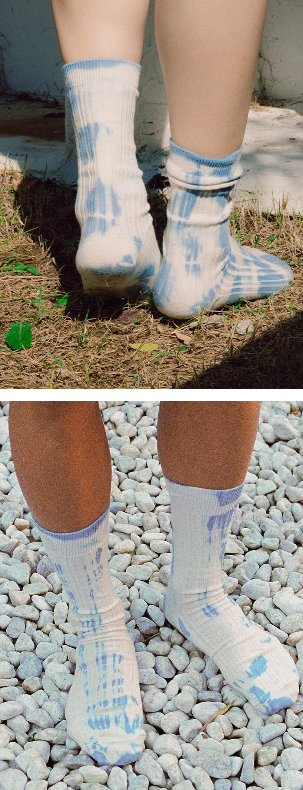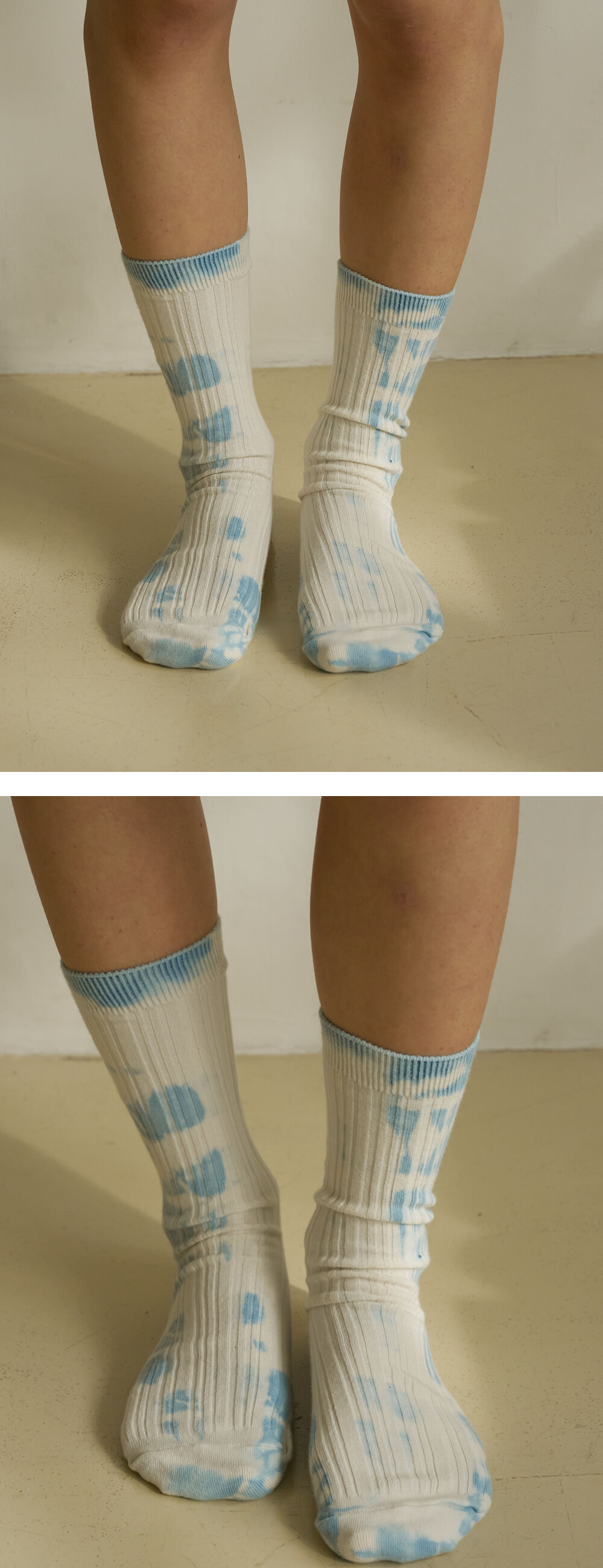 Plants tie-dye socks in blue_식물 염색 양말 블루