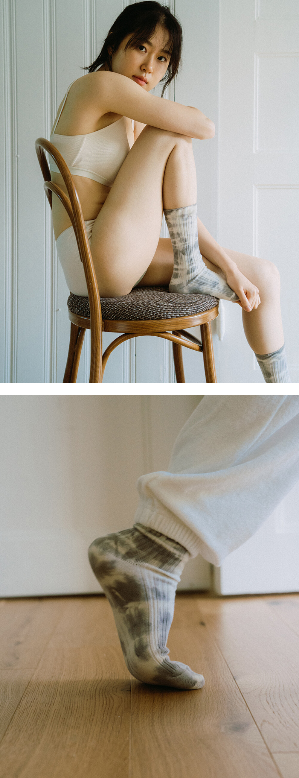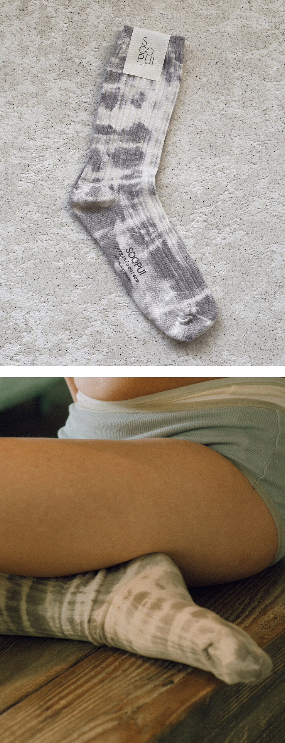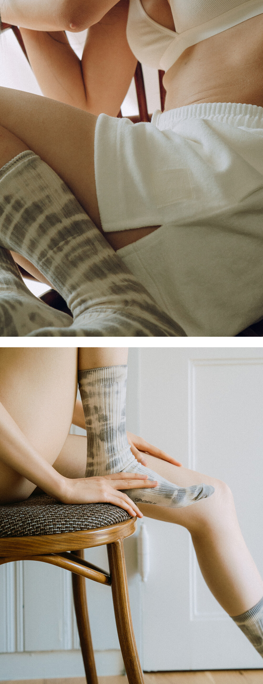 Plants tie-dye socks in gray_식물 염색 양말 그레이