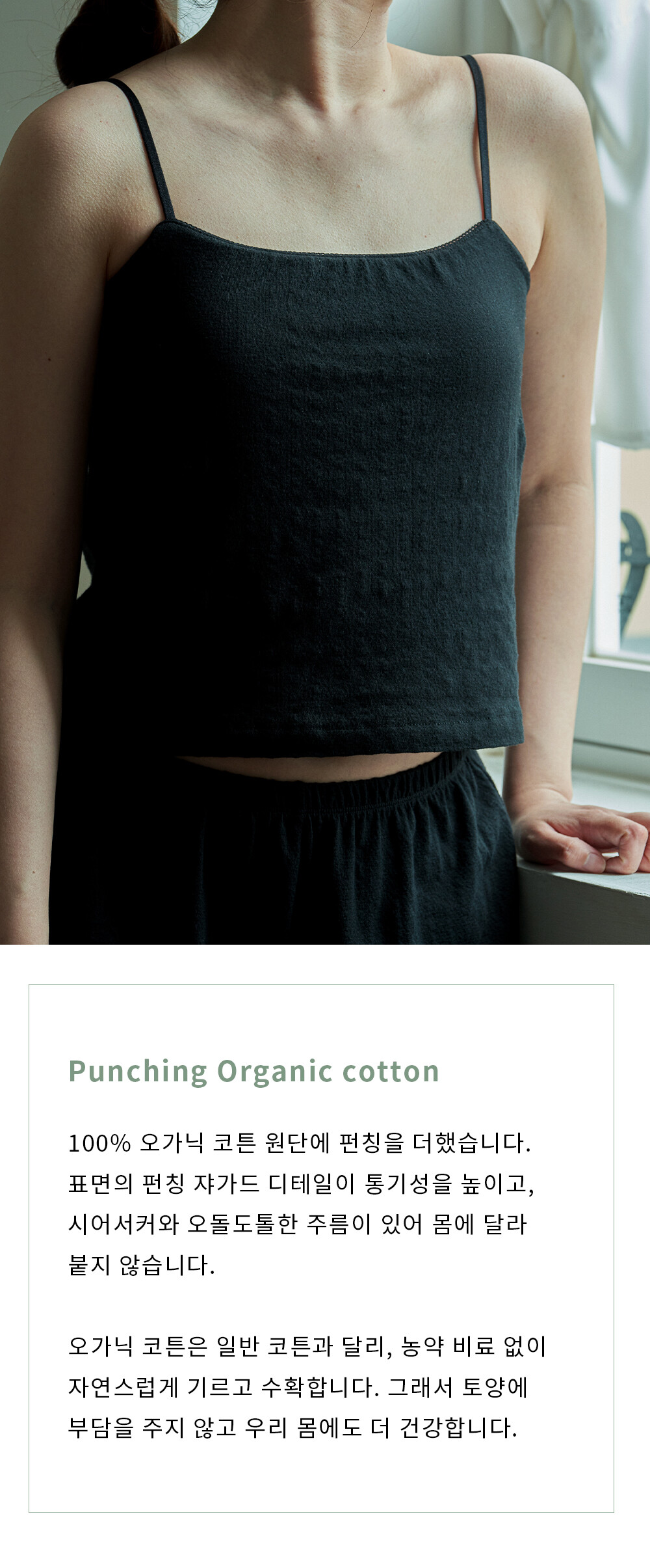 punching sleeveless in black - 오가닉 코튼 펀칭 슬리브리스 (이너 브라 내장) 블랙
