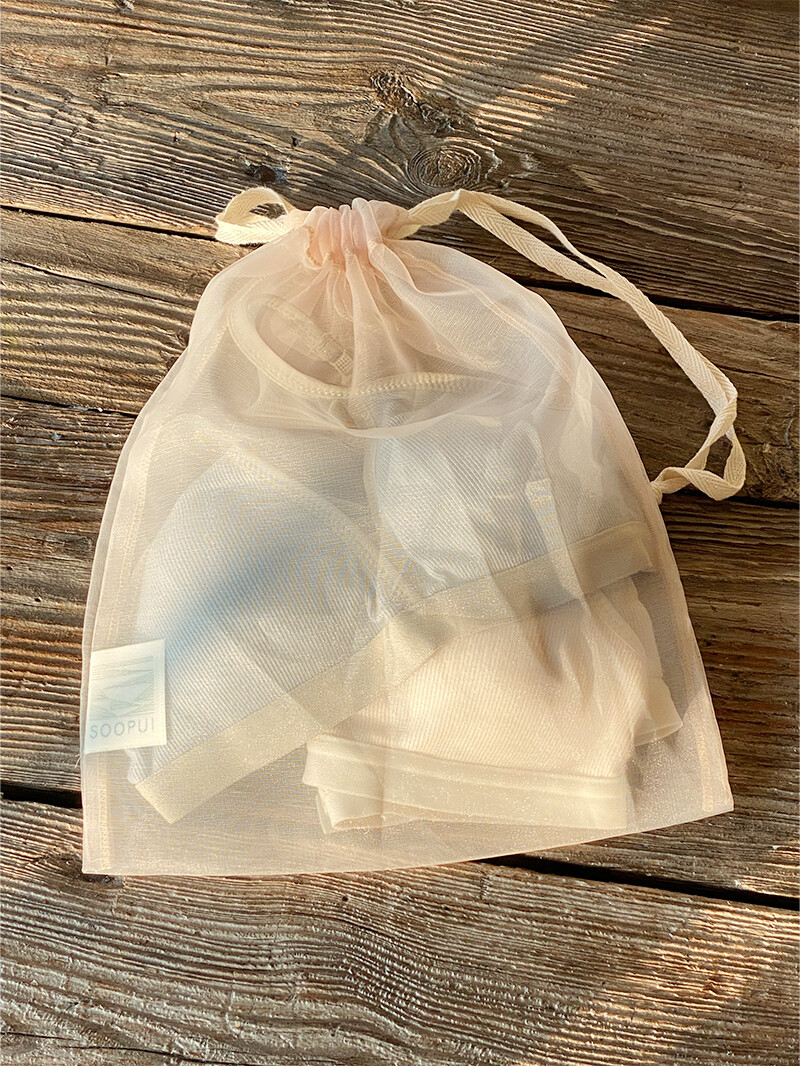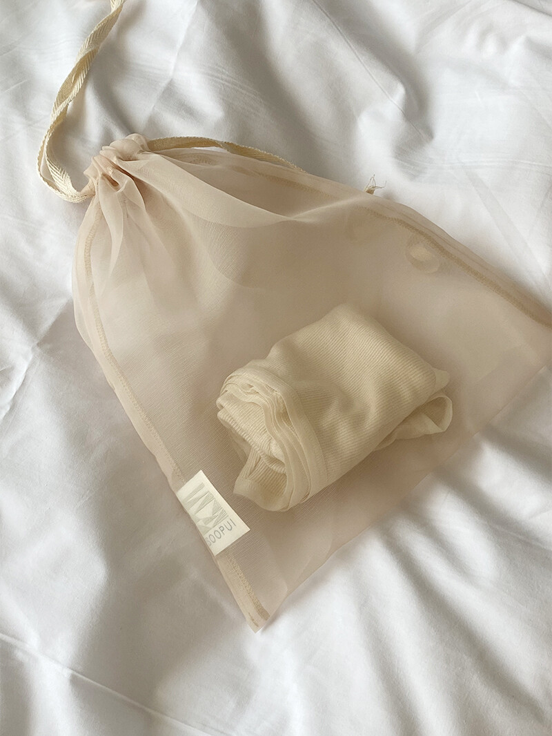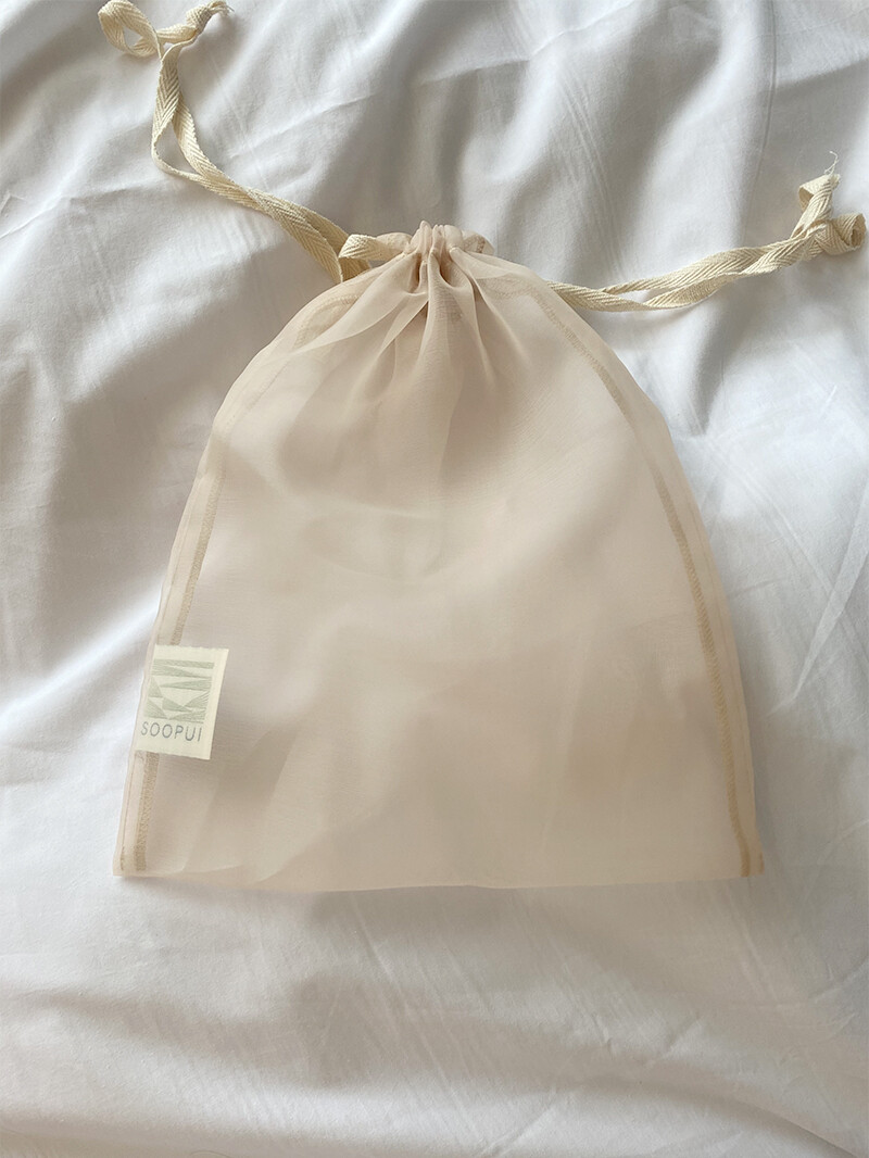 비침이 있는 오간자 원단을 사용해 제작한 수푸이 파우치입니다.